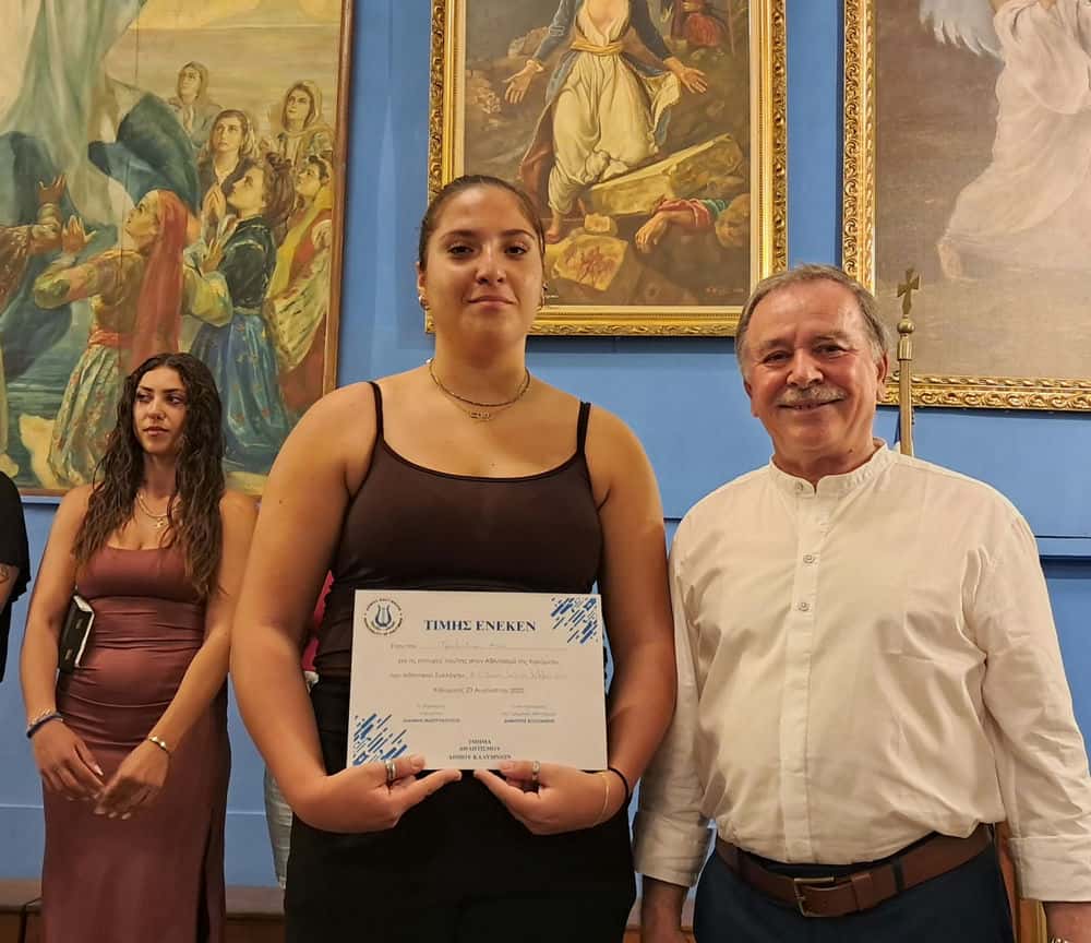 Συγκινητική στιγμή της βραδιάς ήταν όταν η πρωταθλήτρια Ελλάδας στη δισκοβολία Χρυσούλα Αναγνωστοπούλου, κρατώντας στην αγκαλιά το μικρό παιδί της, παρέλαβε το βραβείο του συζύγου της και αθλητή της δισκοβολίας της Ένωσης Καζώνης Κάλυμνος 2000, Γεώργιου Χαραμαντά, ο οποίος έχει στο ενεργητικό του πανελλήνιες διακρίσεις.