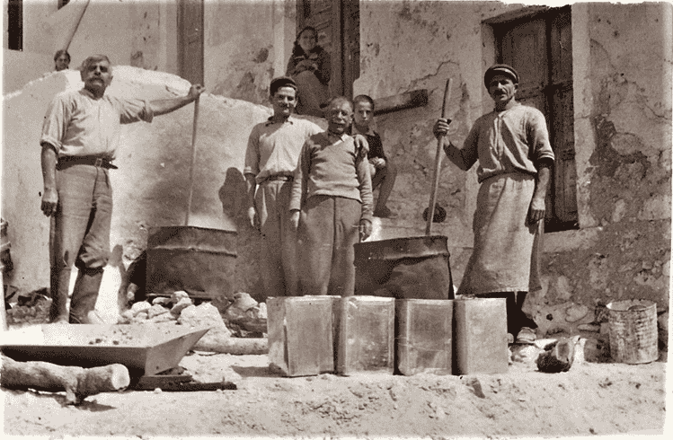 Καθημερινά και όλη μέρα, όσο μια- μια προμήθεια ετοιμαζόταν, συγκεντρωνόταν και κουβαλιόταν από τους «χαμάληδες» – αχθοφόρους και φορτωνόταν στα ντεπόζιτα. Το καρότσι κατάφορτο από βαρέλια νερού. Θα καθαριστούν καλά, θα ασπριστούν με φωτεινό ασβέστη και θα γεμιστούν από στέρνες και Δημοτικές βρύσες. Το νερό, η μεγάλη πεθυμιά των σφουγγαράδων, μες στο λιοπύρι των άνυδρων αφρικάνικων ακτών. Γράφει ο σφουγγαράς στην καλή του: