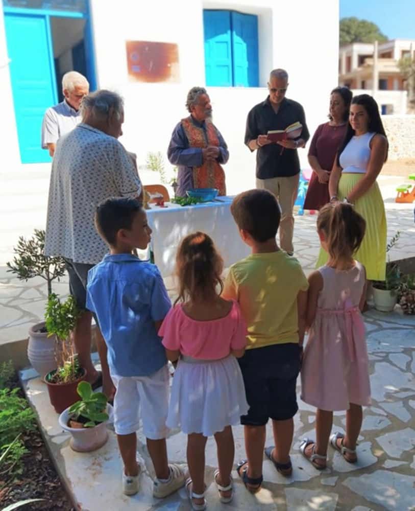 Τον αγιασμό τέλεσε ο εφημέριος του νησιού, παρουσία της δασκάλας Αθηνάς Σχοινά, που θα είναι η πρώτη που θα στελεχώσει το Δημοτικό, αλλά και της νηπιαγωγού Μαρίας Τσαβιταρόγλου, η οποία συνεχίζει για δεύτερη χρονιά στην Ψέριμο. Στην τελετή συμμετείχαν οι πέντε μικροί μαθητές με τους γονείς τους, κάτοικοι και επισκέπτες του νησιού, δημιουργώντας μια γιορτινή ατμόσφαιρα.