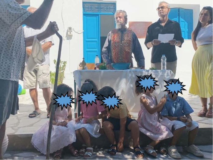 Τον αγιασμό τέλεσε ο εφημέριος του νησιού, παρουσία της δασκάλας Αθηνάς Σχοινά, που θα είναι η πρώτη που θα στελεχώσει το Δημοτικό, αλλά και της νηπιαγωγού Μαρίας Τσαβιταρόγλου, η οποία συνεχίζει για δεύτερη χρονιά στην Ψέριμο. Στην τελετή συμμετείχαν οι πέντε μικροί μαθητές με τους γονείς τους, κάτοικοι και επισκέπτες του νησιού, δημιουργώντας μια γιορτινή ατμόσφαιρα.