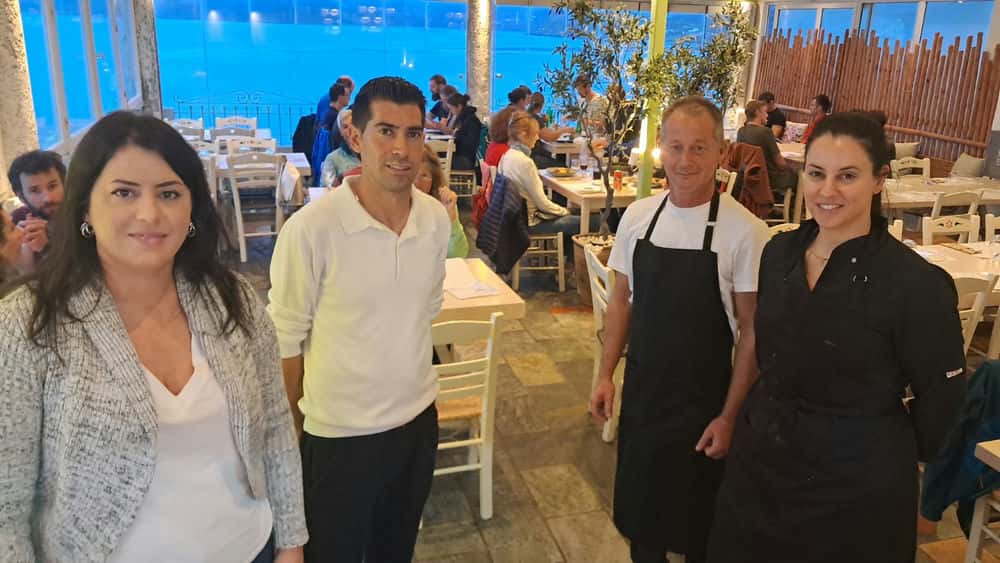 Μία από τις στάσεις μας ήταν στη γνωστή ταβέρνα «Το Αιγαιοπελαγίτικο», σημείο αναφοράς για τους λάτρεις της καλής κουζίνας και της μοναδικής θέας προς τη μαγευτική Τέλενδο. Ο ιδιοκτήτης και σεφ του καταστήματος, Γιώργος Πιζάνιας, μας υποδέχτηκε με χαμόγελο και μίλησε για τη φετινή τουριστική σεζόν, εκφράζοντας την ικανοποίηση του για την αυξημένη κίνηση και τη σταθερή στήριξη του κόσμου.