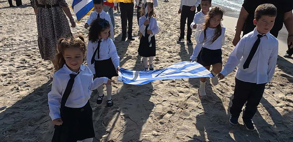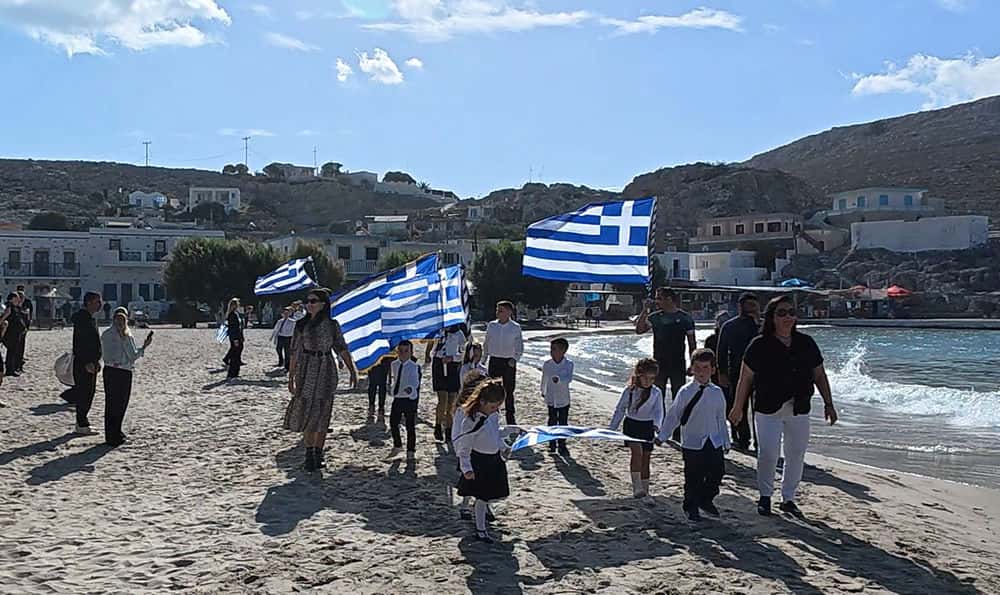 Η αμμώδης παραλία μεταμορφώθηκε σε έναν ζωντανό χώρο μνήμης και δόξας, πλημμυρισμένο από γαλανόλευκες σημαίες που κυμάτιζαν στα χέρια μαθητών και δασκάλων, μεταφέροντας σε κάθε γωνιά του Αιγαίου το διαχρονικό μήνυμα της ελευθερίας, της ενότητας και της πίστης στην πατρίδα.