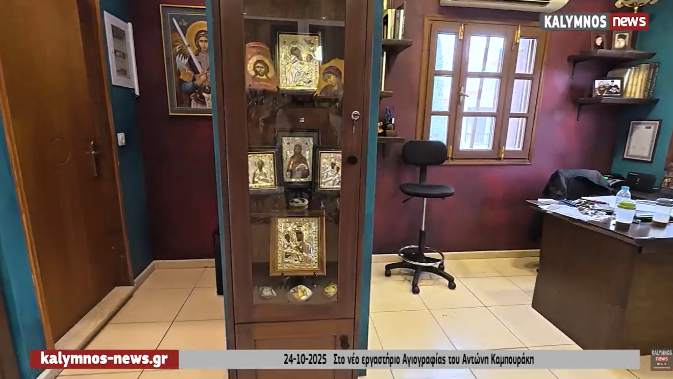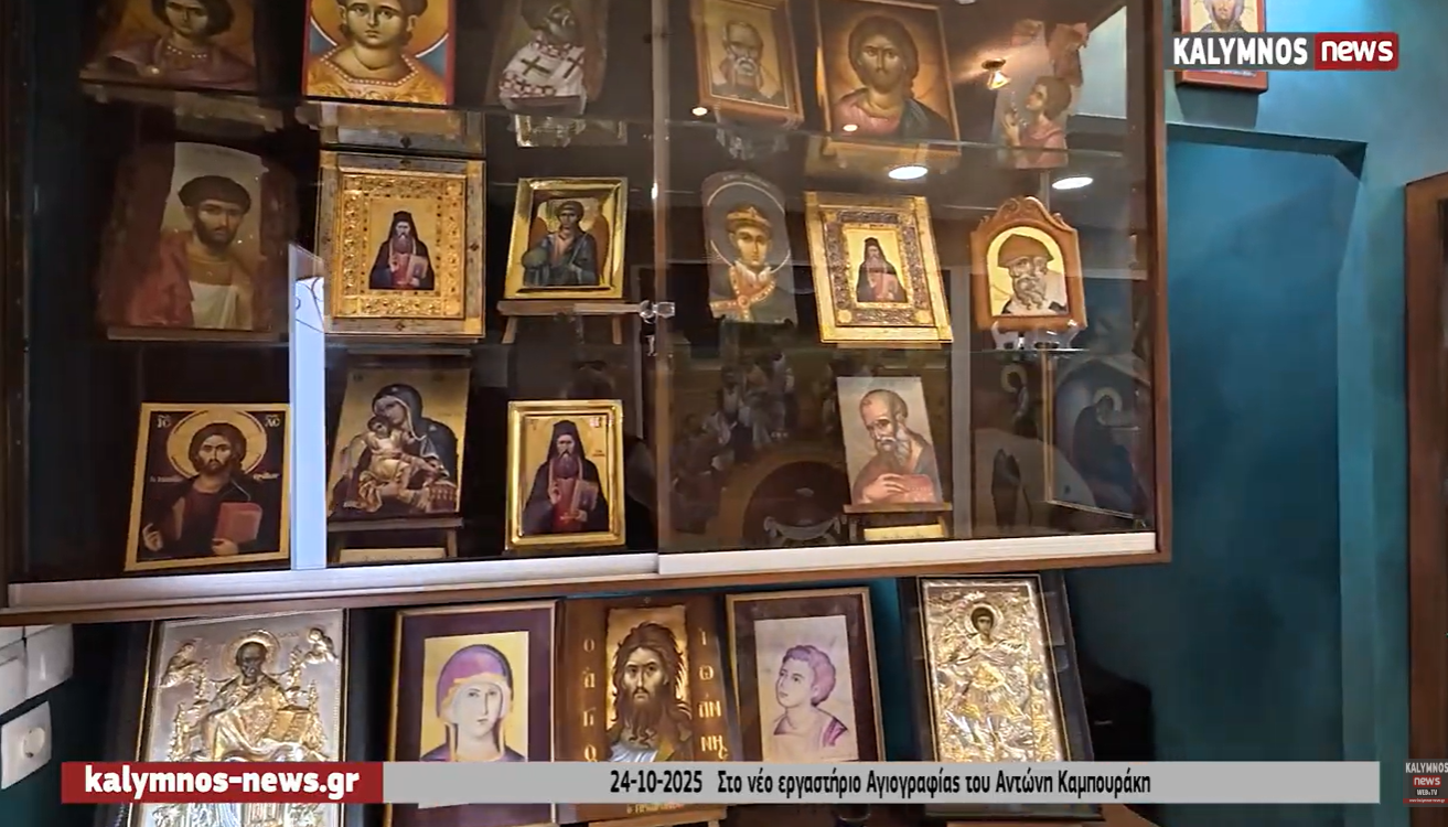 Με το φακό του Kalymnos News βρεθήκαμε το πρωινό της Παρασκευής 24 Οκτωβρίου 2025 στους Ποταμούς Καλύμνου, στο νέο χώρο όπου στεγάζεται πλέον το Εργαστήρι Αγιογραφίας του καταξιωμένου και διακεκριμένου Καλύμνιου αγιογράφου Αντώνη Χ. Καμπουράκη. Ο νέος του καλλιτεχνικός «οίκος» είναι πιο ευρύχωρος, φωτεινός και εύκολα προσβάσιμος, όπως μας είπε ο ίδιος, επιτρέποντας στους επισκέπτες να έρχονται πιο κοντά στη βυζαντινή τέχνη και στο πνεύμα της δημιουργίας.