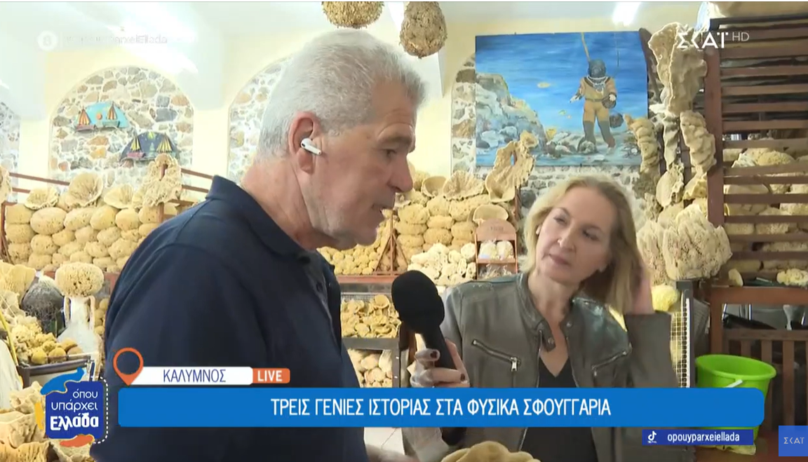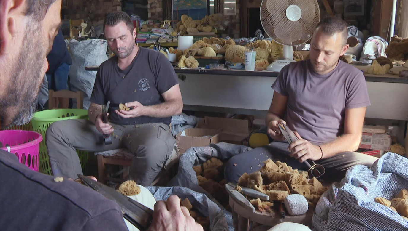 Επίσκεψη σε  ένα από τα εργαστήρια επεξεργασίας και εμπορίας σφουγγαριών του Μανώλη Μακρυλλού και στη συνέχεια σε μία από τις παλαιότερες αποθήκες σφουγγαριών του Νίκου Παπαχατζή η κάμερα της εκπομπής κατέγραψε όλη τη διαδικασία.