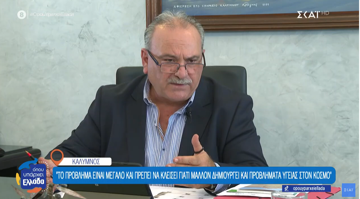 Βέβαια το επόμενο ρεπορτάζ ήταν στενάχωρο αφού είχε να κάνει με την Χωματερή της Καλύμνου κοντά στο λιμάνι, αποτελεί μέχρι και σήμερα ένα σοβαρό υγειονομικό πρόβλημα. Πρόκειται για μια από τις λίγες ανεξέλεγκτες χωματερές που έχουν απομείνει στην Ελλάδα, με όλων των ειδών οικιακά, αστικά, απορρίμματα, μπάζα, έπιπλα… Κι ενώ η οριστική διαχείριση έχει δρομολογηθεί, η προσωρινή λύση με τη μεταφορά των σκουπιδιών στον ΧΥΤΑ της Κω έχει σκοντάψει σε ενστάσεις του Δήμου Κω. Για το θέμα μιλά ο Έπαρχος Μανώλης Μουσελλής