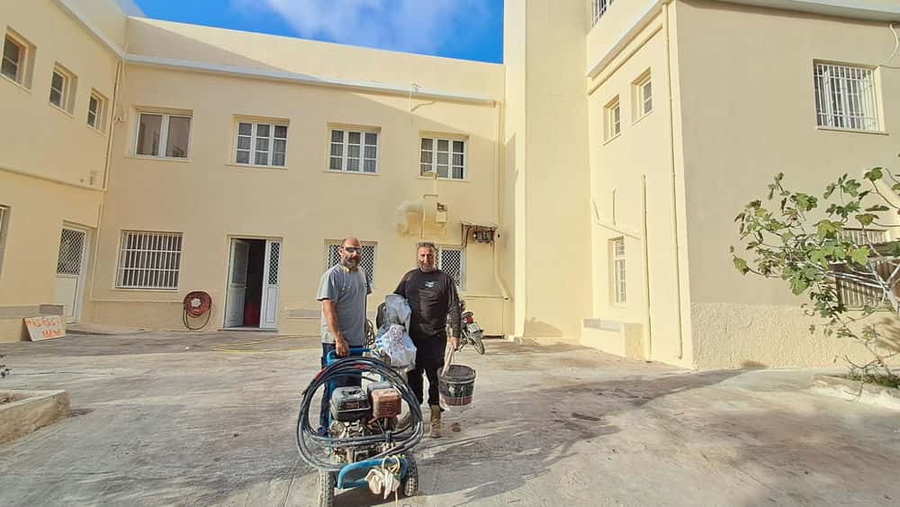 Ο Κώστας Σπυρόπουλος, με πολυετή εμπειρία στο αντικείμενο, ανέλαβε τις βαφές και τους ελαιοχρωματισμούς του κτιρίου. Όπως ανέφερε, το έργο ξεκίνησε στα μέσα Σεπτεμβρίου και ήδη έχουν ολοκληρωθεί οι τρεις πλευρές του Γηροκομείου. «Αναμένουμε να στεγνώσουν οι σοβάδες για να προχωρήσουμε στην πρόσοψη. Υπολογίζουμε ότι μέσα σε δύο εβδομάδες θα έχουμε τελειώσει πλήρως», σημείωσε.