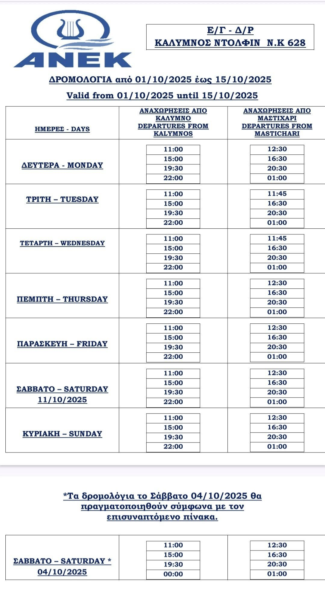 Από την ΑΝΕ ΚΑΛΥΜΝΟΥ τα δρομολόγια του “ΚΑΛΥΜΝΟΣ ΝΤΛΦΙΝ” μέχρι 15 Οκτωβρίου 2025
