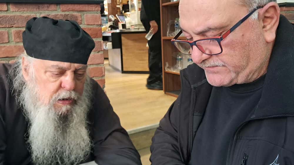 και τον αγιορείτη μοναχό Νικήτα Κυπραίο από το Ιερό Κελί Παναγίας Πορταΐτισσας στην Καψάλα, ο οποίος επιτελεί το απαιτητικό διακόνημα του μάγειρα.
