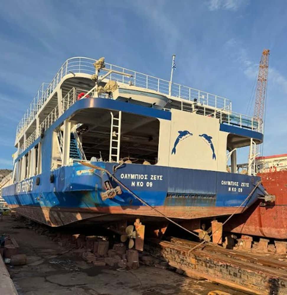 Το πλοίο ανελκύστηκε σήμερα Τετάρτη 12 Νοεμβρίου 2025 στο ναυπηγείο «ΑΦΟΙ ΚΕΛΑΪΔΗ» στο Πέραμα, όπου θα πραγματοποιηθούν όλες οι απαιτούμενες τεχνικές εργασίες. Η διαδικασία αναμένεται να διαρκέσει έως τα τέλη Νοεμβρίου, οπότε και το «ΟΛΥΜΠΙΟΣ ΖΕΥΣ» θα επιστρέψει στην Κάλυμνο, προκειμένου να επαναδρομολογηθεί άμεσα στις τακτικές του γραμμές.