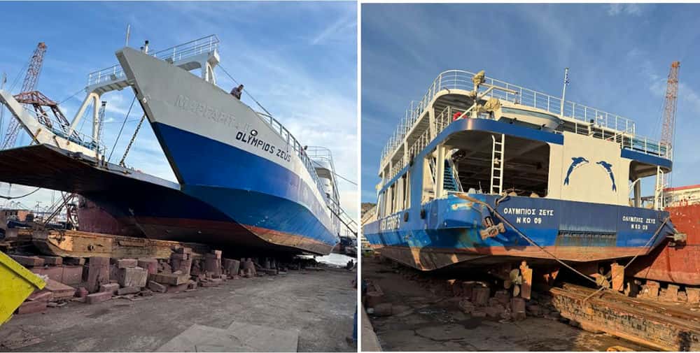 Το πλοίο ανελκύστηκε σήμερα Τετάρτη 12 Νοεμβρίου 2025 στο ναυπηγείο «ΑΦΟΙ ΚΕΛΑΪΔΗ» στο Πέραμα, όπου θα πραγματοποιηθούν όλες οι απαιτούμενες τεχνικές εργασίες. Η διαδικασία αναμένεται να διαρκέσει έως τα τέλη Νοεμβρίου, οπότε και το «ΟΛΥΜΠΙΟΣ ΖΕΥΣ» θα επιστρέψει στην Κάλυμνο, προκειμένου να επαναδρομολογηθεί άμεσα στις τακτικές του γραμμές.