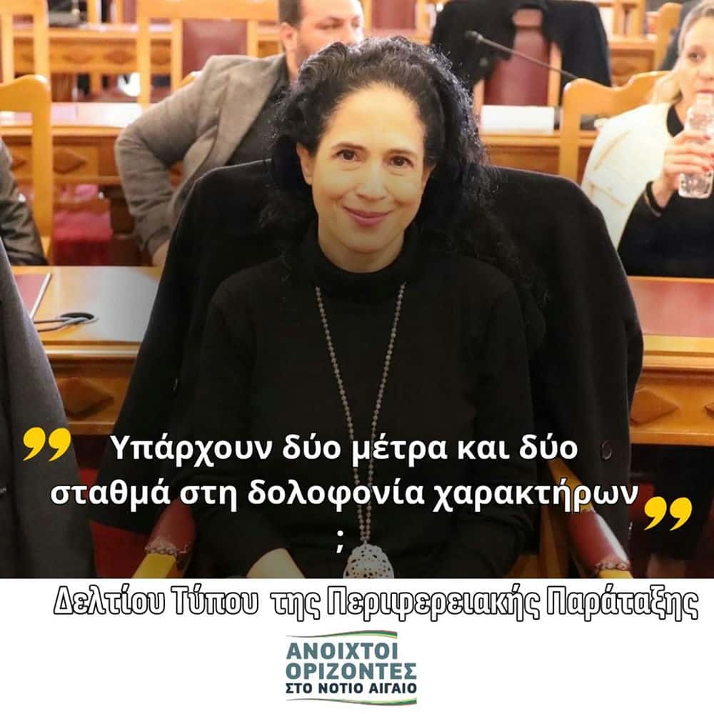 Η περιφερειακή παράταξη «Ανοιχτοί Ορίζοντες στο Νότιο Αιγαίο» και η επικεφαλής Χρύσα Καραγιάννη καταγγέλλει οργανωμένη προσπάθεια «δολοφονίας χαρακτήρων» εις βάρος του Δημάρχου Κω και μελών της παράταξης, από άτομο που, όπως αναφέρει, υπηρετεί σε κομβική θέση της Περιφέρειας. Σε σκληρή ανακοίνωσή της, η παράταξη κάνει λόγο για θρασύδειλη και ανώνυμη επίθεση που πλήττει τη δημοκρατία και ζητά από την περιφερειακή αρχή να αναλάβει τις θεσμικές και πολιτικές της ευθύνες