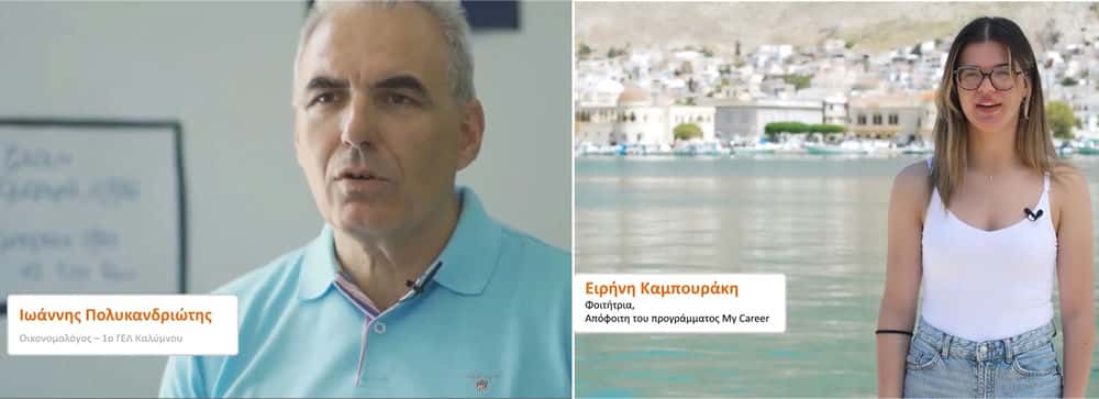 Στο πρόσφατο αφιέρωμα, η ομάδα του JA Greece επέστρεψε στην Κάλυμνο για να συναντήσει την Ειρήνη Καμπουράκη, μαθήτρια του 1ου ΓΕΛ Καλύμνου τότε, και να συζητήσει μαζί της τον αντίκτυπο που είχε το πρόγραμμα στις μετέπειτα επιλογές της. Παράλληλα, καταγράφηκαν μαρτυρίες και εμπειρίες από τον υπεύθυνο εκπαιδευτικό του προγράμματος, καθηγητή Ιωάννη Πολυκανδριώτη, ο οποίος συνεχίζει με αφοσίωση να υλοποιεί το “My Career” μέχρι και σήμερα στο ΕΠΑΛ Καλύμνου. Η επιτυχία του προγράμματος υπήρξε τέτοια, που υιοθετήθηκε και από το Γυμνάσιο του Χωριού, όπου συνεχίζει να εφαρμόζεται με εξαιρετικά αποτελέσματα.
