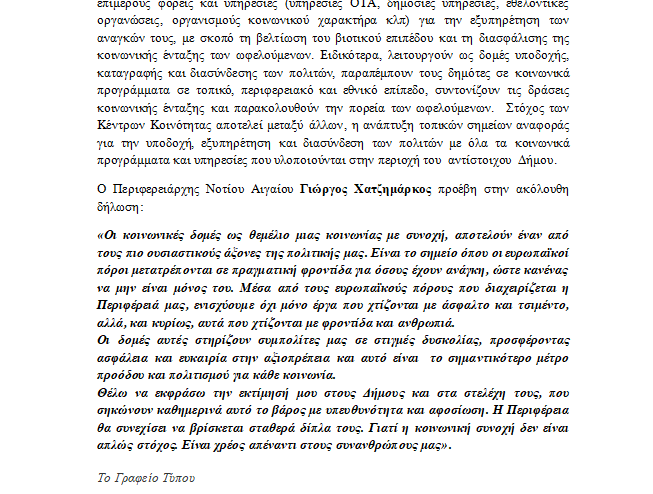 Παραθέτουμε το δελτίο τύπου της Περιφέρειας Νοτίου Αιγαίου: