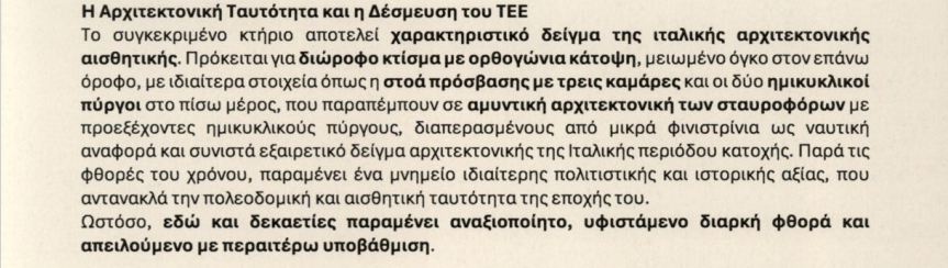 - ότι θα μπορούσε να εξεταστεί το ενδεχόμενο εναλλακτικής παραχώρησης στο ΤΕΕ ενός άλλου νεοκλασικού κτιρίου στο κέντρο της Πόθιας , άμεσα λειτουργικού.