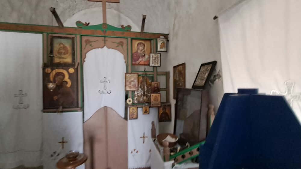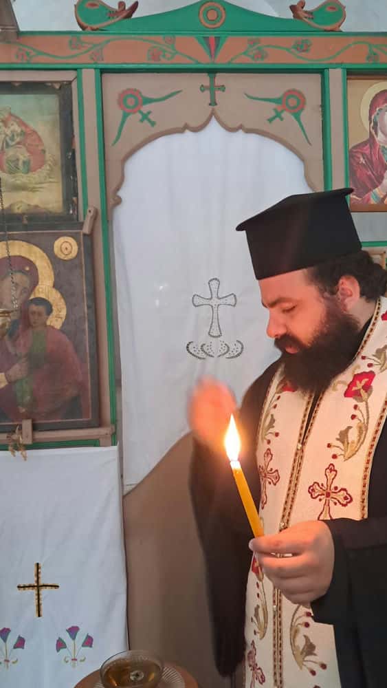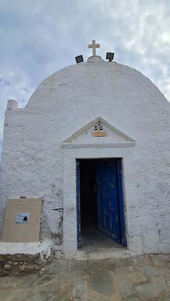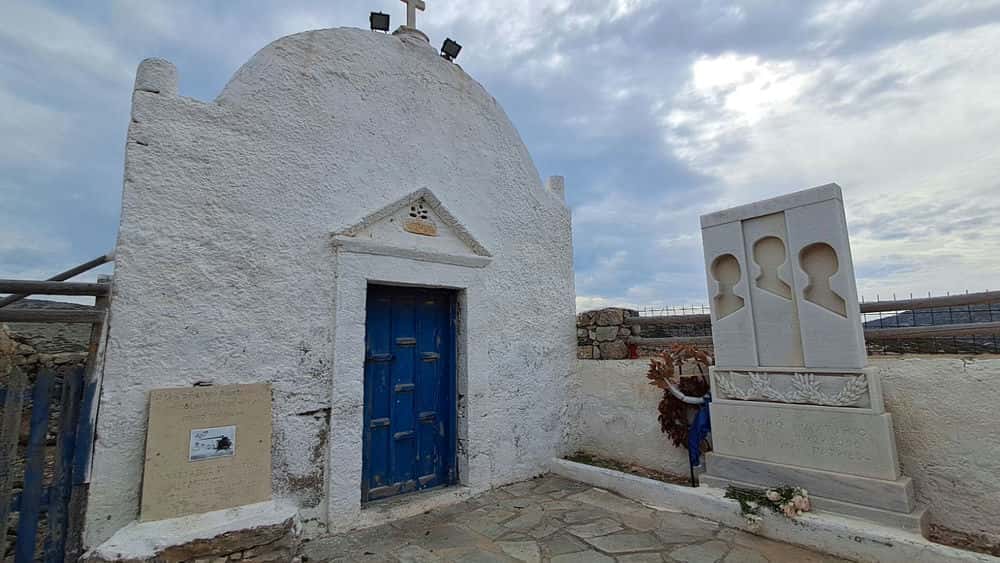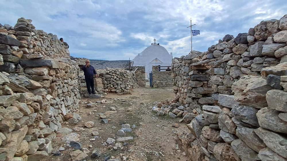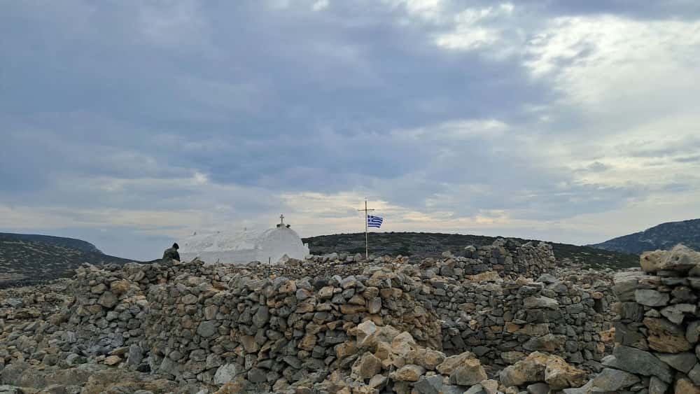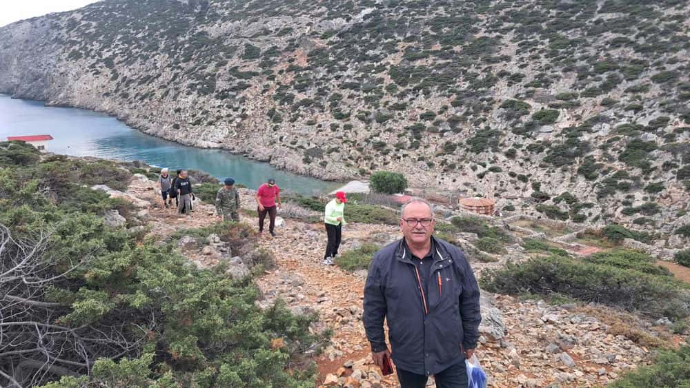 Με την καθοδήγηση της κυράς Ειρήνης, η αποστολή κατευθύνθηκε στο μικρό εκκλησάκι του Αη Γιώργη, όπου ο παπάς Σταύρος τέλεσε επιμνημόσυνη δέηση υπέρ αναπαύσεως των ψυχών όλων όσοι έζησαν και αγωνίστηκαν σε αυτό το μικρό, αλλά γεμάτο ιστορία νησί.