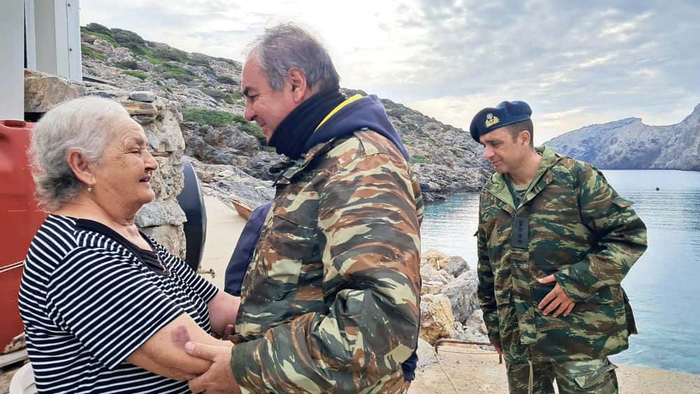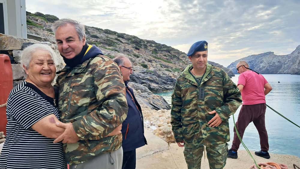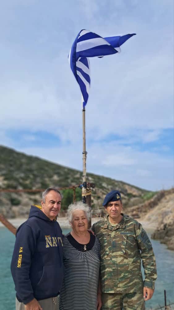 Η ίδια, όπως πάντα, με το χαμόγελο και τη δύναμη ψυχής που τη χαρακτηρίζουν, υποδέχτηκε τους επισκέπτες, τους ξενάγησε στο νησί και μοιράστηκε ιστορίες από τη ζωή της, τις δυσκολίες της καθημερινότητας και τις αναμνήσεις της από το τραγικό συμβάν της 11ης Φεβρουαρίου 2016, όταν το ελικόπτερο τύπου Agusta Bell του Πολεμικού Ναυτικού συνετρίβη στο νησί, παρασύροντας στον θάνατο τους Υποπλοιάρχους Πανανά Κωνσταντίνο και Τουλίτση Αναστάσιο, και τον Ανθυπασπιστή – χειριστή ραντάρ Ευάγγελο Ελευθέριο.