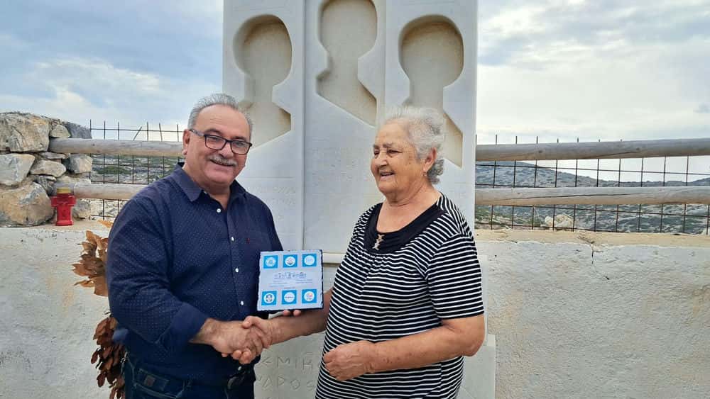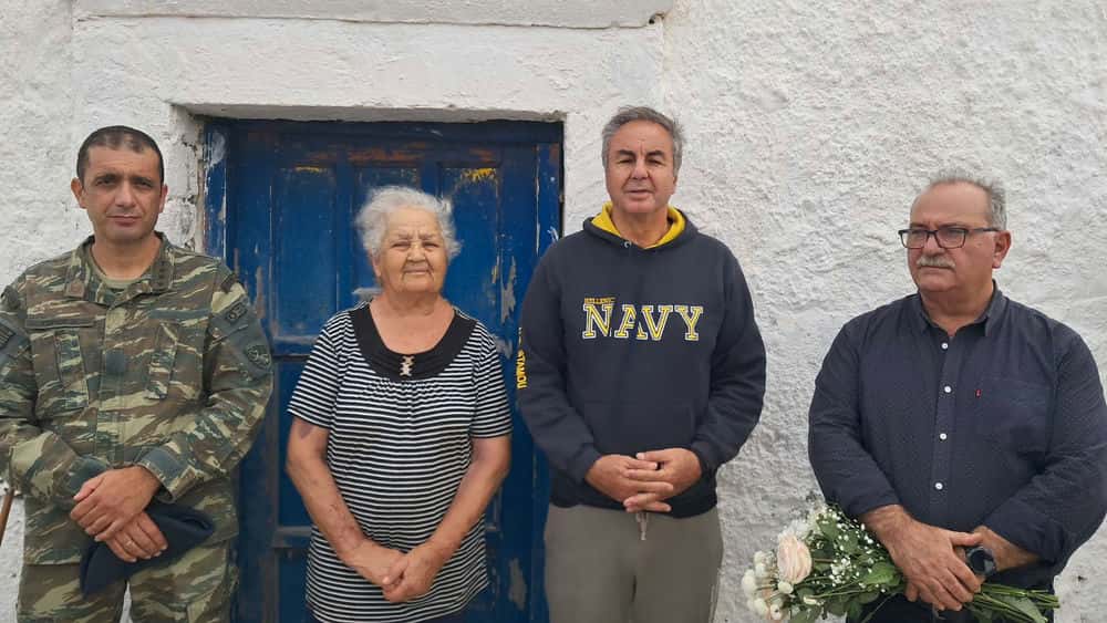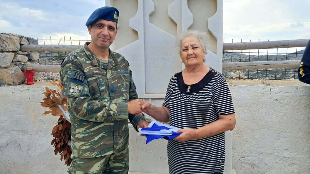 Η επίσκεψη ολοκληρώθηκε με την έπαρση της νέας ελληνικής σημαίας που έφερε η αποστολή και την απονομή τιμητικής πλακέτας από τον Έπαρχο Μανώλη Μουσελλή στην κυρά Ειρήνη, σε ένδειξη ευγνωμοσύνης και σεβασμού από όλους τους Δωδεκανήσιους – και όχι μόνο.