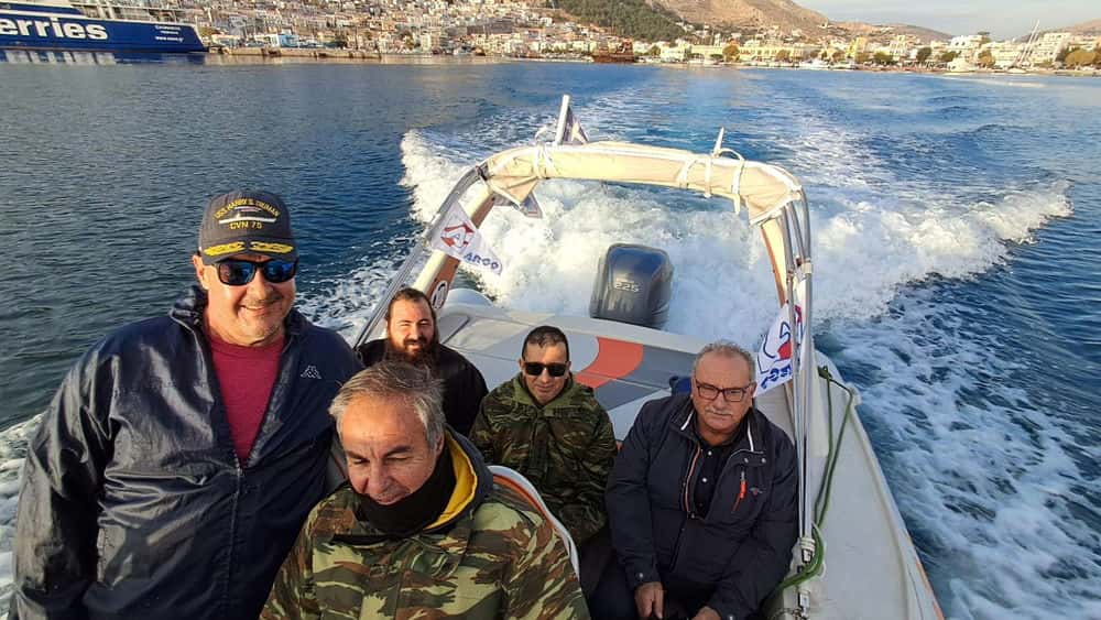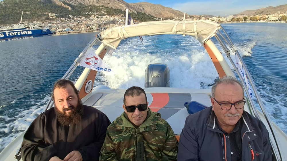 Στην αποστολή εκτός από τον Έπαρχο , συμμετείχαν ο Διοικητής του 5/42 ΣΕ Συνταγματάρχης Κωνσταντίνος Τσίρος, ο ιερέας π. Σταύρος Μάρθας που διατέθηκε από τη Μητρόπολη, ο πρόεδρος των Εφέδρων Αξιωματικών Καλύμνου Ιωάννης Νομικάριος, καθώς και ο συνεργάτης του Kalymnos News, Μάμας Χαραμαντάς, που κατέγραψε τις μοναδικές αυτές στιγμές σε εικόνα και βίντεο.