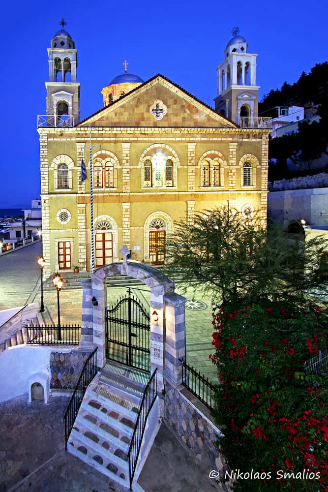 Ο επιβλητικός ενοριακός ναός δεσπόζει στην είσοδο του λιμανιού της Πόθιας. Χτισμένος στα τέλη του 19ου αιώνα, αποτελεί τον μεγαλύτερο και πιο εντυπωσιακό ναό του νησιού.