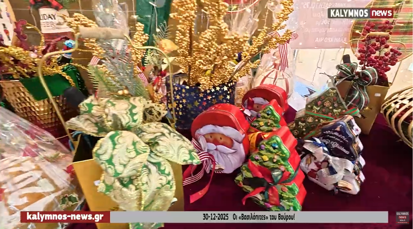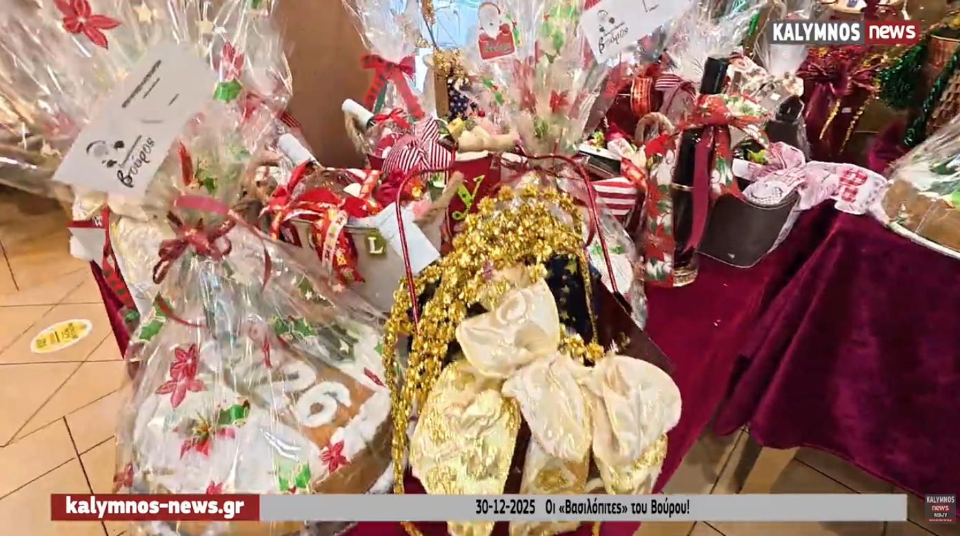 Ο φακός του Kalymnos News βρέθηκε σήμερα, Τρίτη 30 Δεκεμβρίου 2025, στο κατάστημα «Βούρος», στα Βασιλικά, καταγράφοντας ένα σκηνικό γεμάτο αρώματα, χρώματα και χαμόγελα. Στον χώρο επικρατεί ζεστασιά και έντονη εορταστική διάθεση, ενώ οι βιτρίνες και οι πάγκοι είναι γεμάτοι με βασιλόπιτες-κοσμήματα, γλυκά και καλαίσθητες δωροσυνθέσεις.