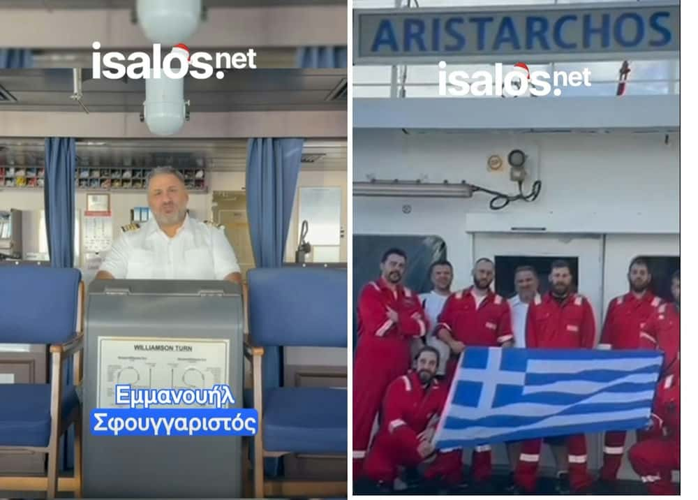 Ο Καλύμνιος πλοίαρχος Εμμανουήλ Σφουγγαριστός, κυβερνήτης του LNG ARISTARCHOS, στέλνει τις ευχές του από τον Νότιο Ατλαντικό με προορισμό την Ταϊβάν.