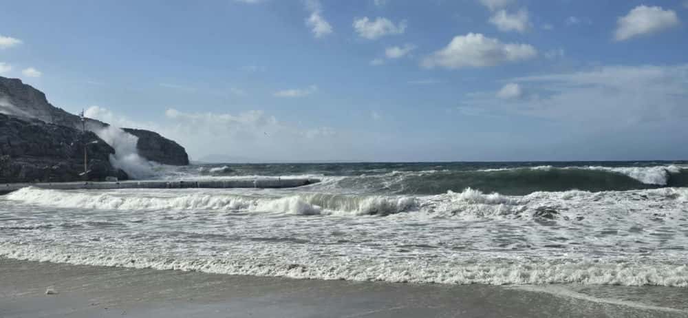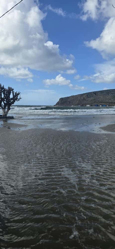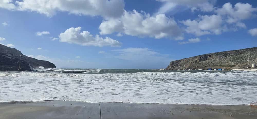Η θάλασσα, φουρτουνιασμένη και αγριεμένη, έχει σκέπασει την προβλήτα, σχεδόν όλη την αμμώδη παραλία και έχει φτάσει μέχρι τις εισόδους κτισμάτων και σπιτιών, που βρίσκονται στο παραλιακό μέτωπο, αλλά και στον εσωτερικό δρόμο του νησιού. Σύμφωνα με μαρτυρίες, τα νερά έχουν φτάσει μέχρι και τον αύλειο χώρο της εκκλησίας της Παναγιάς, δημιουργώντας εικόνες ασυνήθιστης σφοδρότητας για το μικρό νησί.