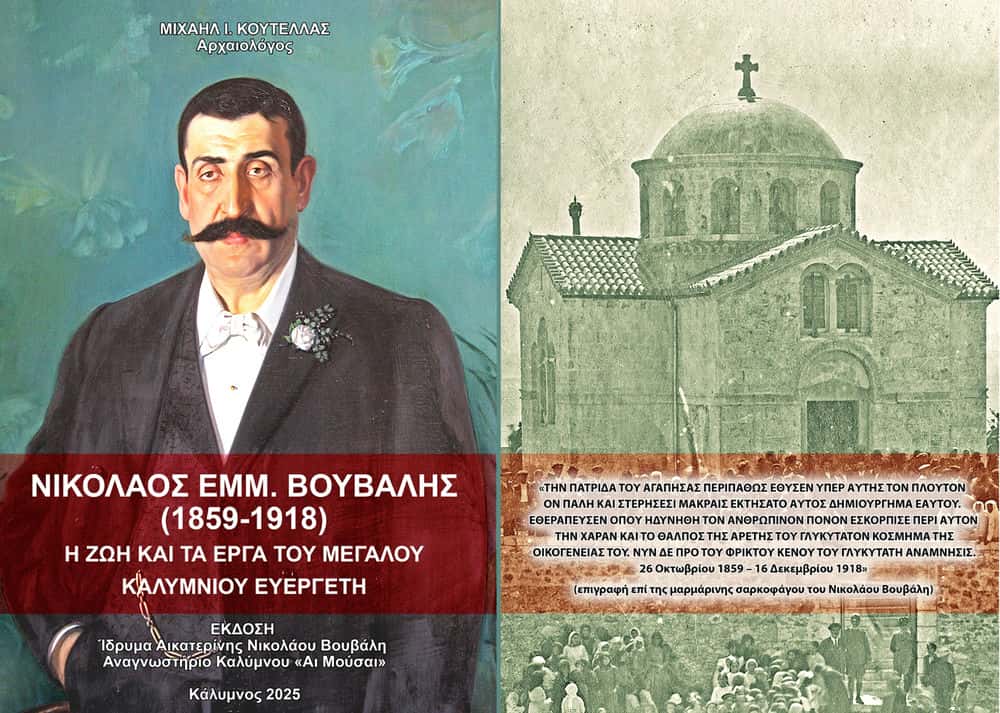 Την Κυριακή 18 Ιανουαρίου 2026, στις 11:30 το πρωί, στα πλαίσια της ετήσιας Τακτικής Γενικής Συνέλευσης του Αναγνωστηρίου «ΑΙ ΜΟΥΣΑΙ», στο ισόγειο του Πνευματικού Κέντρου Καλύμνου, θα γίνει η παρουσίασης ενός μνημειώδους εκδοτικού έργου με τίτλο «Νικόλαος Εμμ. Βουβάλης (1859-1918), Η Ζωή και τα Έργα του Μεγάλου Καλύμνιου Ευεργέτη», του αρχαιολόγου και συγγραφέα, Μιχαήλ Ι.