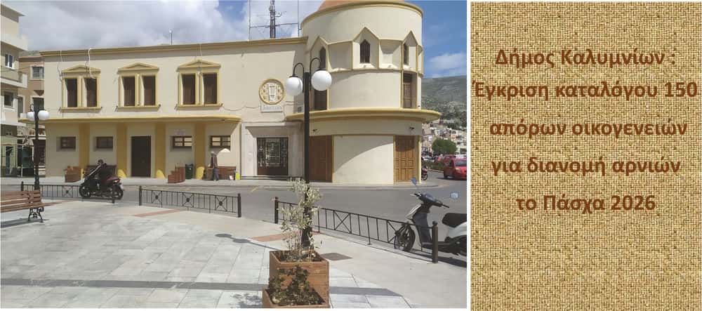 Την επικύρωση του αρχικού καταλόγου 150 οικογενειών – δικαιούχων για τη χορήγηση ποσότητας φρέσκου κρέατος (αρνιά) ενόψει της εορταστικής περιόδου του Πάσχα 2026 αποφάσισε ομόφωνα η Δημοτική Επιτροπή του Δήμου Καλυμνίων , κατά τη συνεδρίαση της στις 24 Φεβρουαρίου 2026.