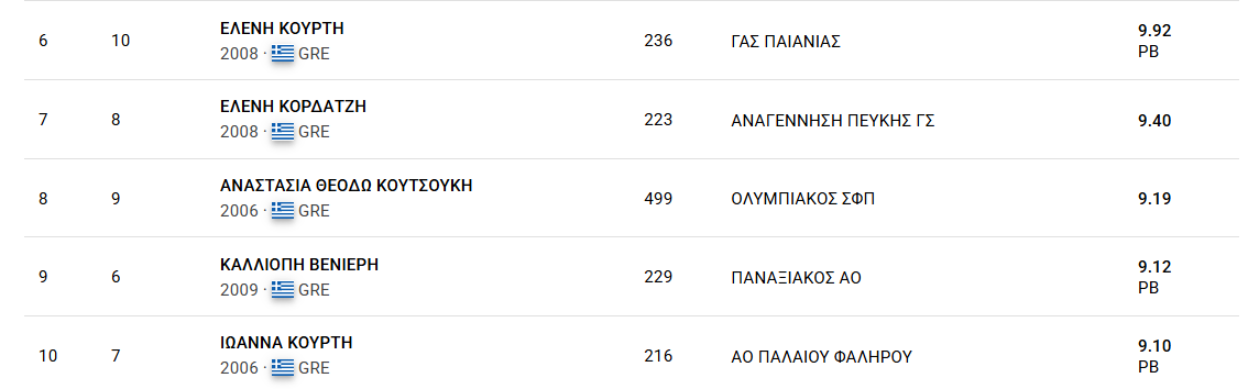 Δείτε το πίνακα με τα τελικά αποτελέσματα: