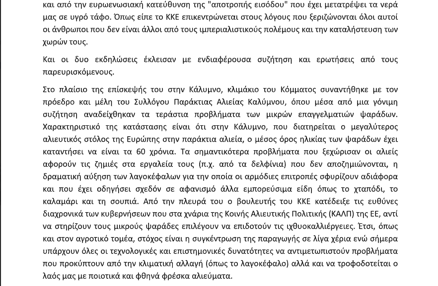 Επίσκεψη του βουλευτή του ΚΚΕ Νίκου Παπαναστάση σε Κάλυμνο και Κω