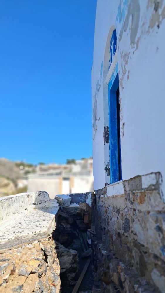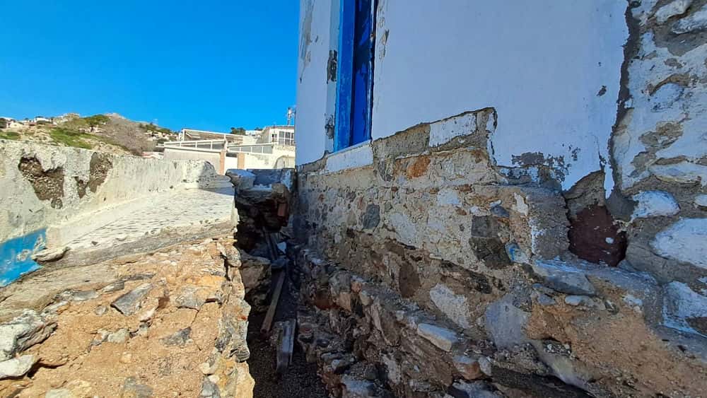 Δεν είναι μόνο η Παναγίτσα που υπέστη φθορές. Στο τμήμα ανάμεσα στο εκκλησάκι και παρακείμενη οικία καταγράφονται σημαντικές ζημιές, με τη θάλασσα να έχει εισχωρήσει και να έχει προκαλέσει καταστροφές σε κατασκευές που μέχρι πρότινος θεωρούνταν ασφαλείς.