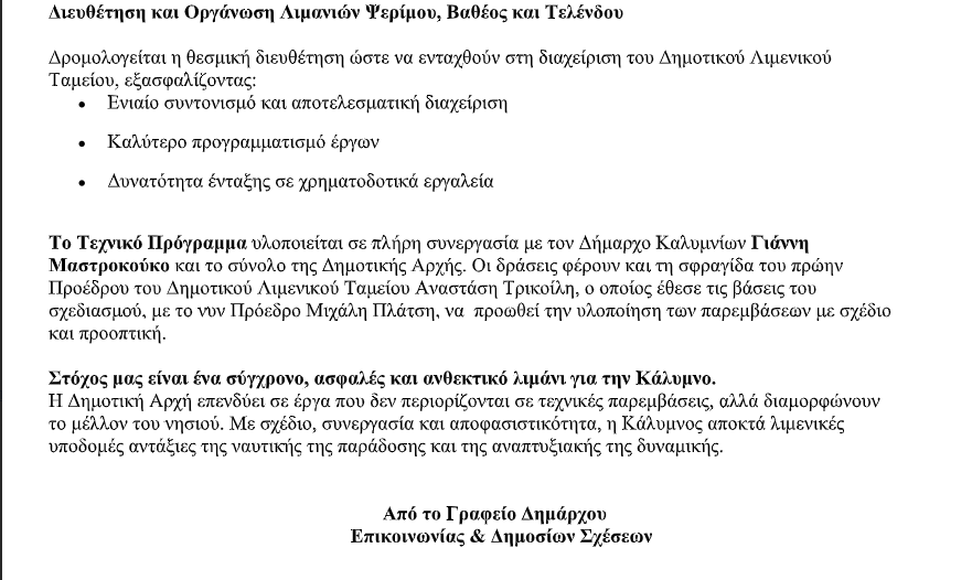 Παραθέτουμε ως έχει το σχετικό δελτίο τύπου του Δήμου Καλυμνίων: