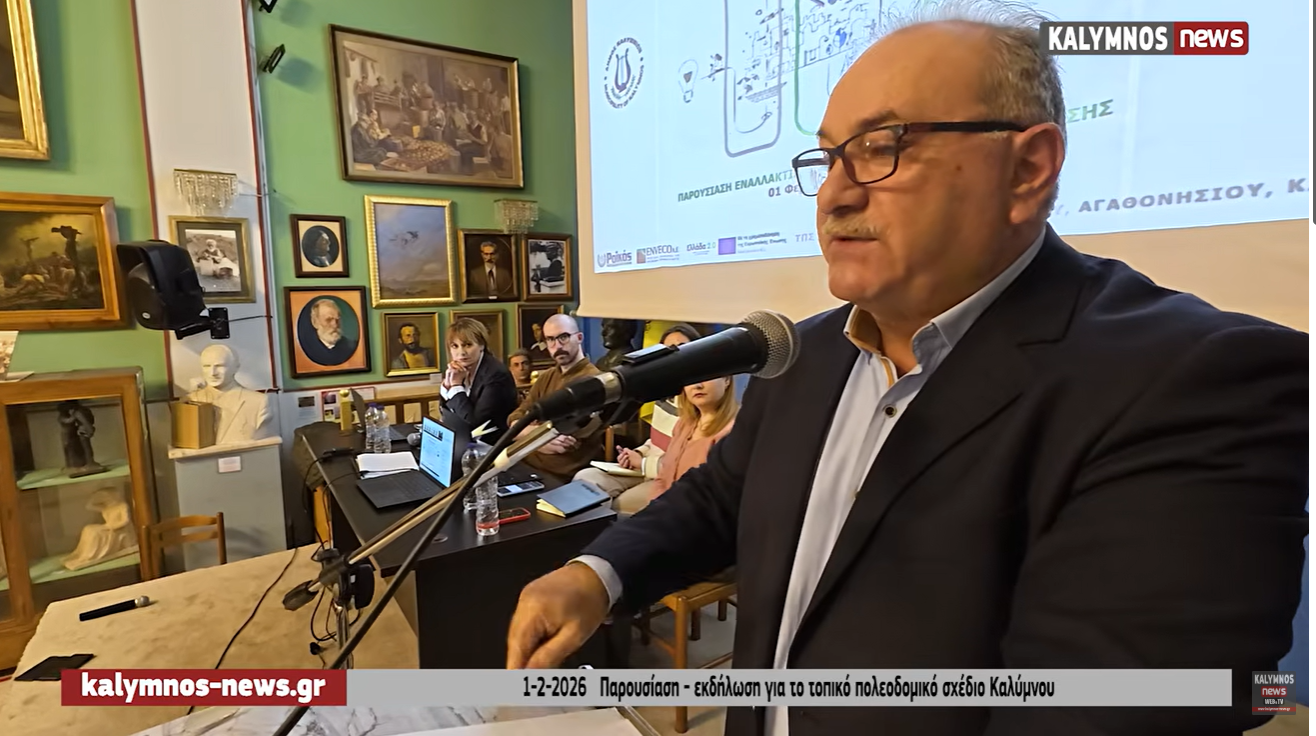 Χαιρετισμούς κατά την έναρξη της εκδήλωσης απηύθυναν ο Δήμαρχος Καλυμνίων Ιωάννης Μαστροκούκος και ο Έπαρχος Π.Ε. Καλύμνου Μανώλης Μουσελλής, οι οποίοι τόνισαν τη σπουδαιότητα της διαδικασίας, τη συνεργασία όλων των εμπλεκόμενων φορέων και την ανάγκη να αξιοποιηθεί το Τοπικό Πολεοδομικό Σχέδιο ως εργαλείο βιώσιμης ανάπτυξης και προοπτικής για τις επόμενες δεκαετίες.