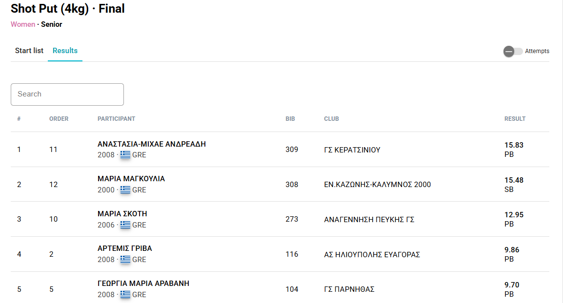 Η Μαρία Μαγκούλια βελτίωσε την προηγούμενη εμφάνισή της κατά 46 εκατοστά σε σχέση με την ημερίδα της 25ης Ιανουαρίου 2026, στέλνοντας τη σφαίρα στα 15,48 μέτρα.