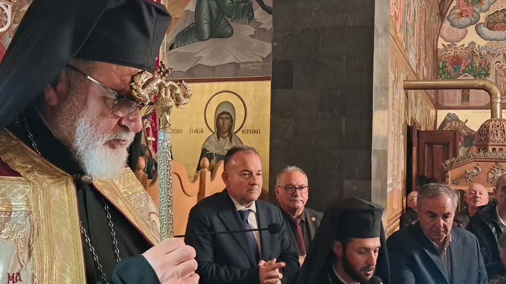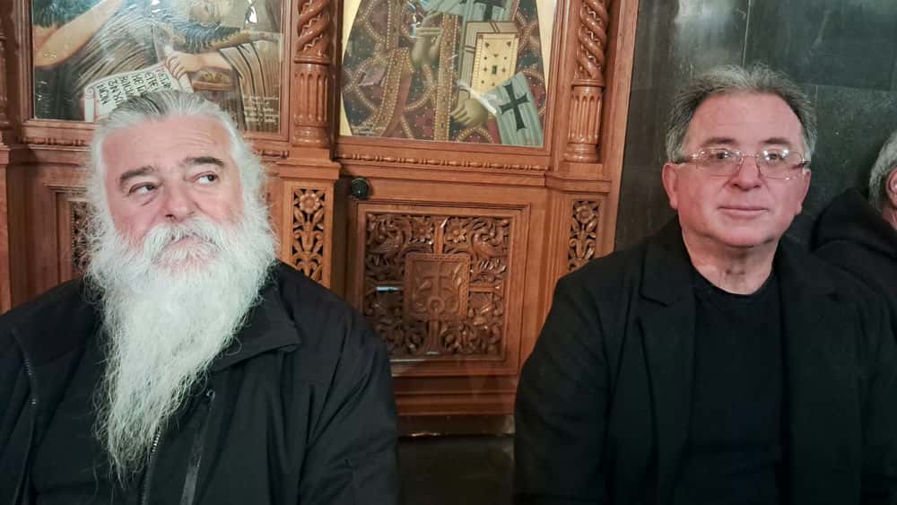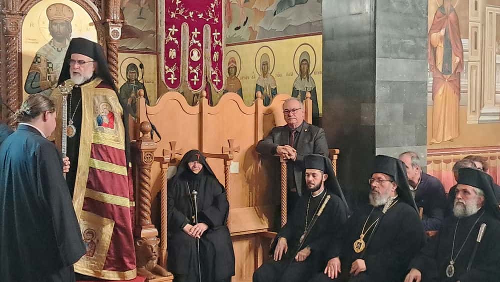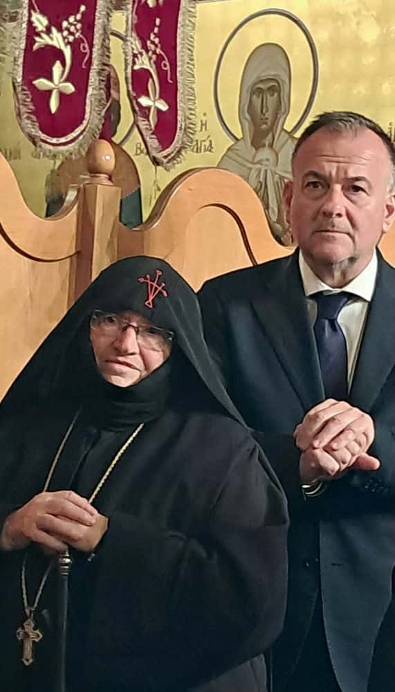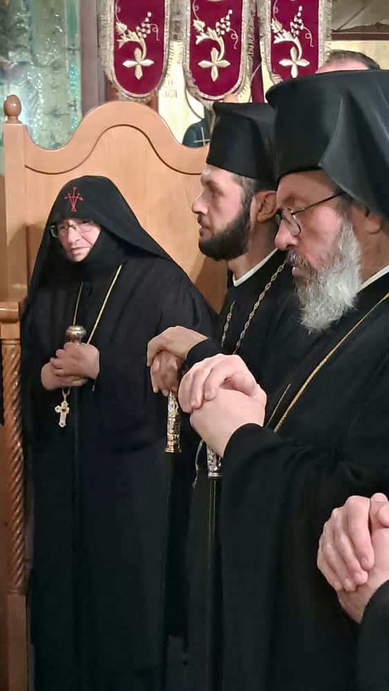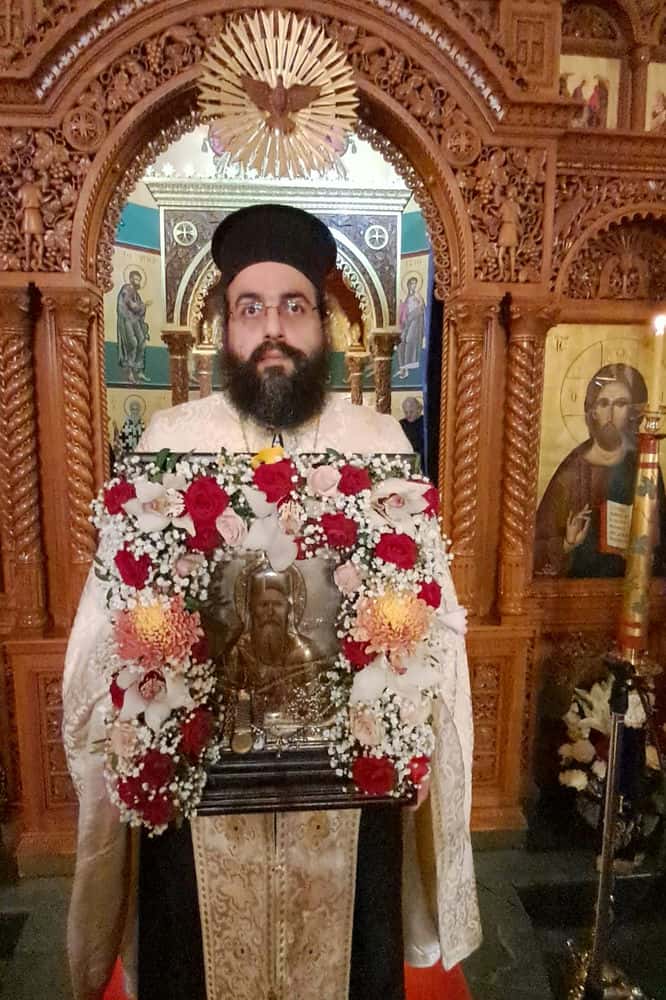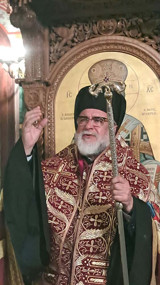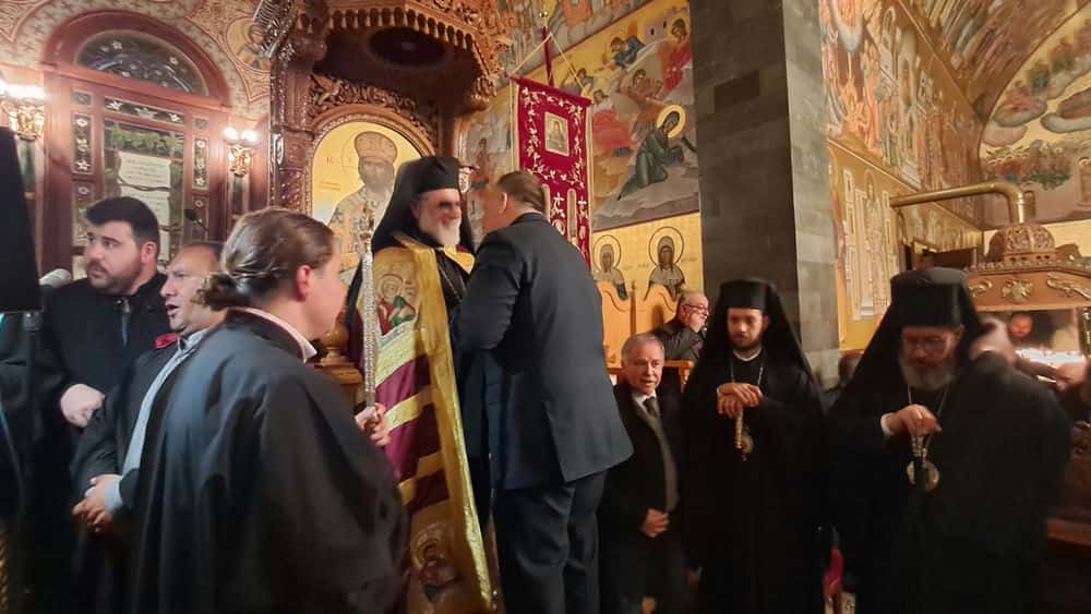 Ο Σεβασμιότατος μητροπολίτης κ. Παϊσιος καθόλη τη διάρκεια του Εσπερινού παρέμεινε στο χώρο όπου φυλάσσεται το σκήνωμα ττου Οσίου Σάββα, μυρώνοντας τους προσκυνητές