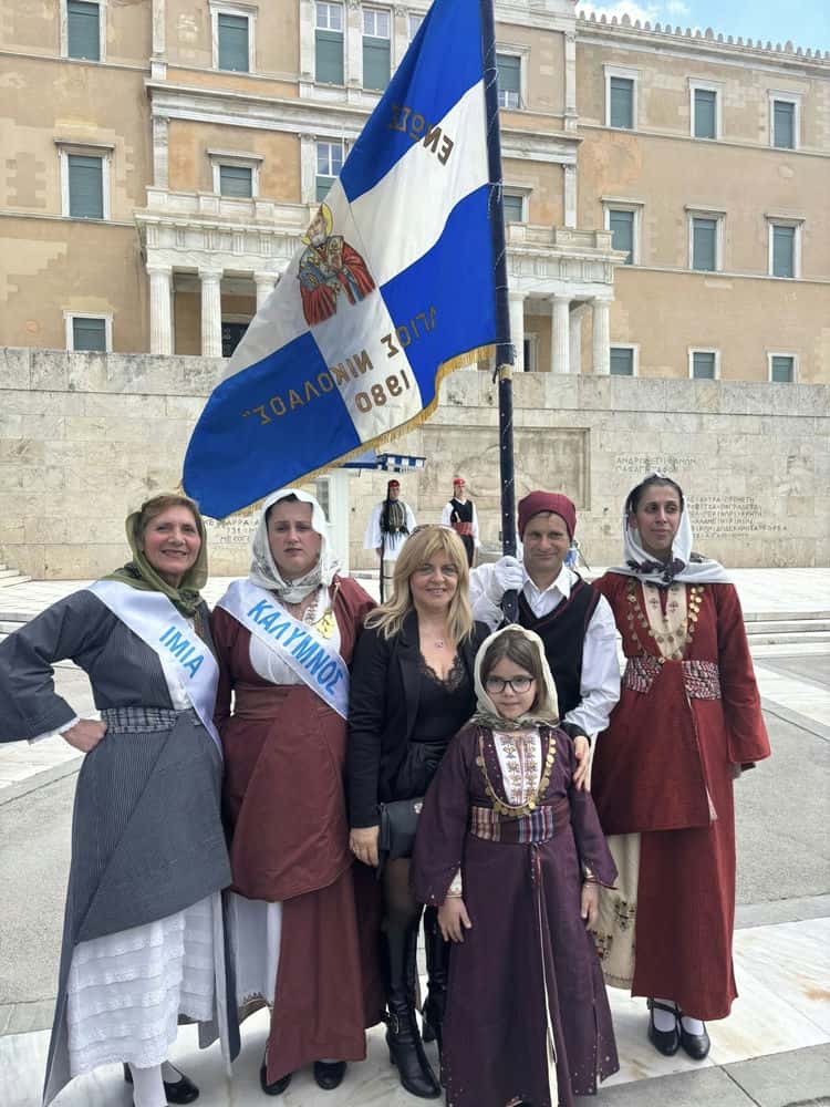 Ιδιαίτερα δυναμική ήταν η παρουσία της Ένωσης Καλυμνίων Αττικής, τα μέλη της οποίας συμμετείχαν ενεργά στις εκδηλώσεις φορώντας τις παραδοσιακές φορεσιές της Καλύμνου, προσδίδοντας ξεχωριστό χρώμα και συμβολισμό στην πορεία.