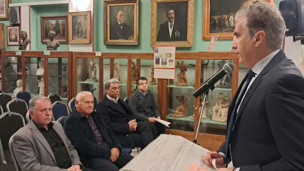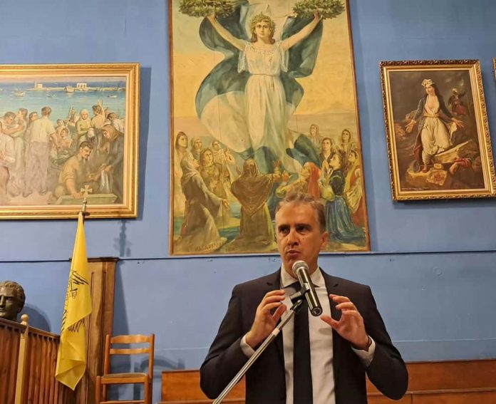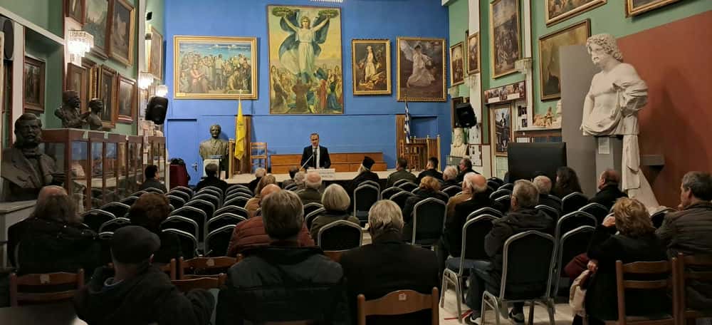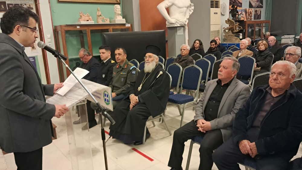 Τον ομιλητή προλόγισε και προσφώνησε ο πρόεδρος του Διοικητικού Συμβουλίου του Αναγνωστηρίου «ΑΙ ΜΟΥΣΑΙ», Παναγιώτης Πιζάνιας, ο οποίος αναφέρθηκε στη σημασία της ιστορικής επετείου και στη διαρκή ανάγκη διατήρησης της ιστορικής μνήμης.