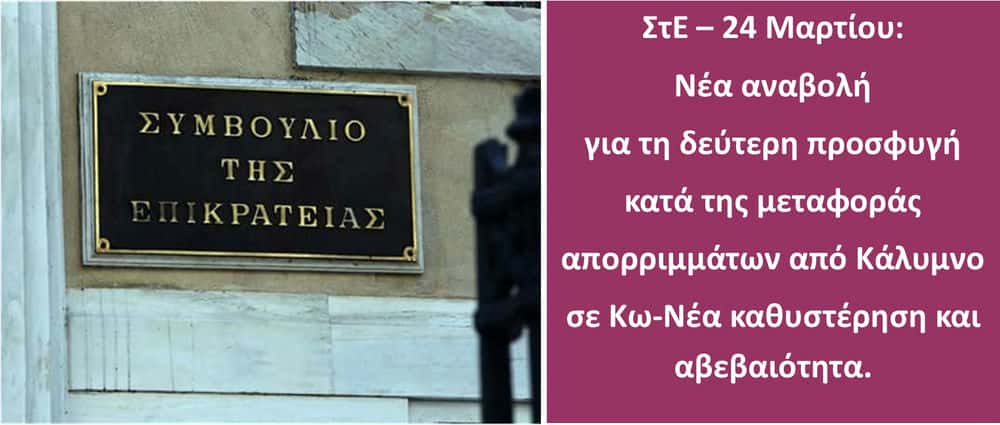 Η υπόθεση της μεταφοράς απορριμμάτων στην Κω συνεχίζει να εξελίσσεται σε ένα διοικητικό και νομικό θρίλερ. Νέα αναβολή στο Συμβούλιο της Επικρατείας, νέα ημερομηνία (28 Απριλίου), νέα παράταση αβεβαιότητας.