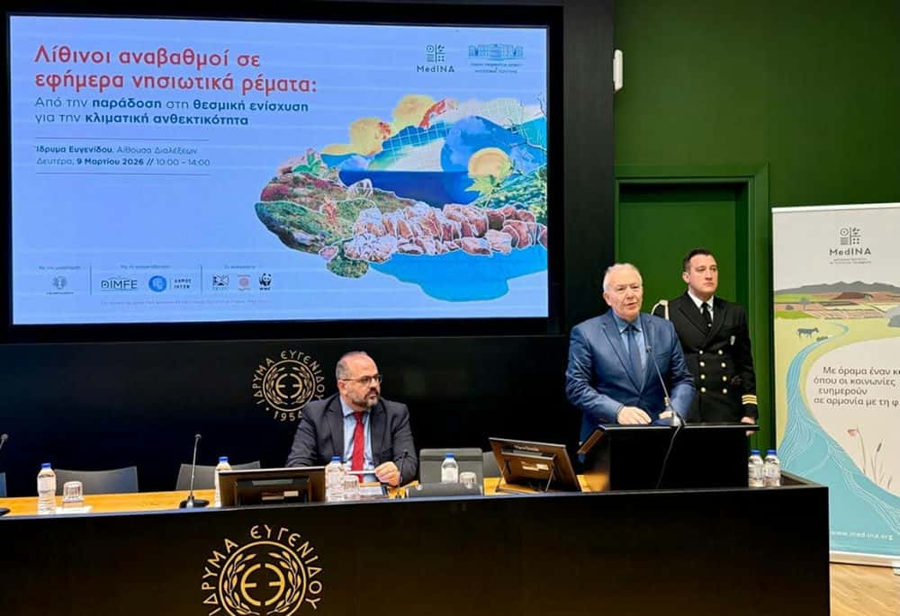 Τα πολλαπλά οφέλη και την αναγκαιότητα διατήρησης, προστασίας και κυρίως επαναφοράς των παραδοσιακών και διαχρονικών πρακτικών των νησιωτών μας, όσον αφορά στην διαχείριση των υδάτινων πόρων, με στόχο τον εμπλουτισμό του υδροφόρου ορίζοντα, τη μείωση του κινδύνου πλημμύρας και ξηρασίας, αλλά και την ενίσχυση της βιοποικιλότητας και της ανθεκτικότητας των νησιών μας, ανέδειξε η Ημερίδα “Λίθινοι αναβαθµοί σε εφήµερα νησιωτικά ρέµατα: Από την παράδοση στη θεσμική ενίσχυση για την κλιματική ανθεκτικότητα”, τις εργασίες της οποίας κήρυξε στο ίδρυμα Ευγενίδου, ο Υφυπουργός Ναυτιλίας και Νησιωτικής Πολιτικής Στέφανος Γκίκας.