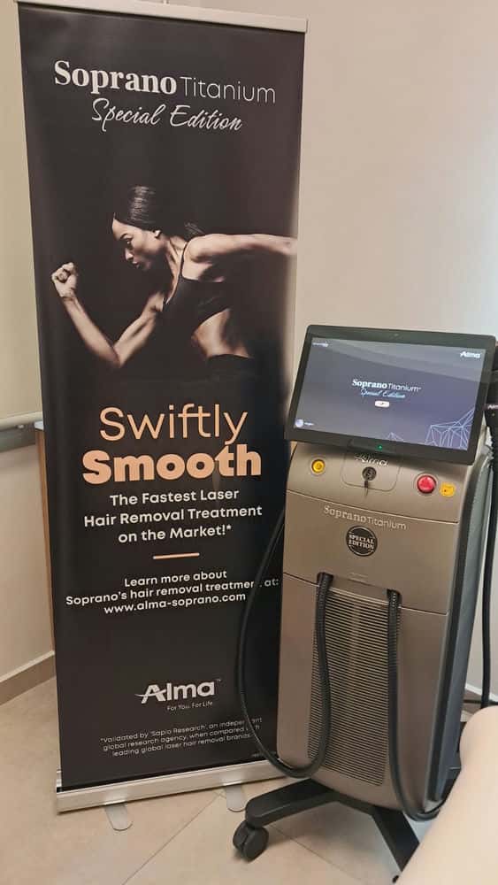 Η αφορμή της νέας μας επίσκεψης ήταν ιδιαίτερα σημαντική. Το κέντρο εξοπλίστηκε πρόσφατα με ένα νέο, υπερσύγχρονο μηχάνημα αποτρίχωσης laser τελευταίας γενιάς, το Soprano Titanium Special Edition, το οποίο θεωρείται από τα κορυφαία παγκοσμίως στον τομέα της αισθητικής τεχνολογίας.