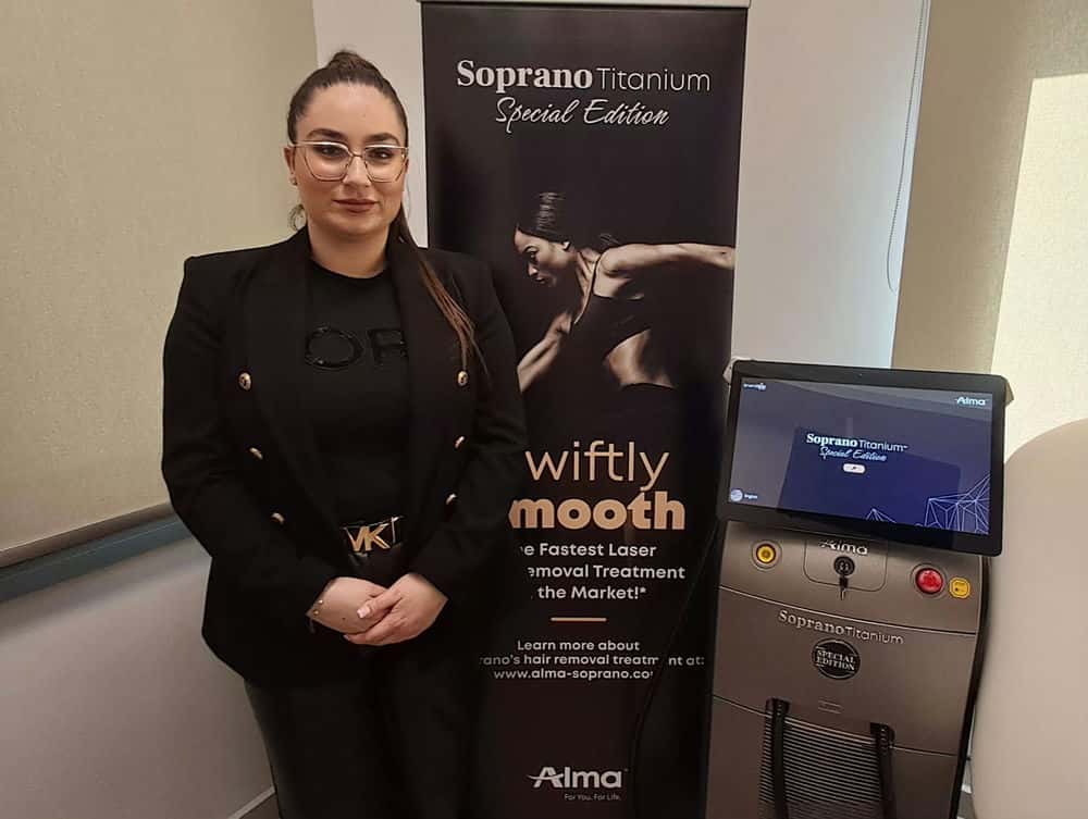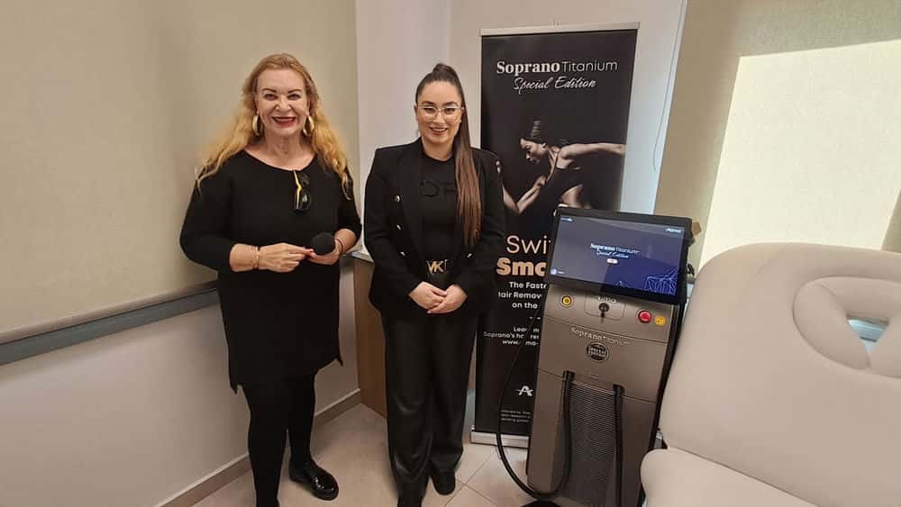 «Το νέο μας μηχάνημα είναι το Soprano Titanium Special Edition, ένα laser αποτρίχωσης που θεωρείται από τα καλύτερα στον κόσμο. Πρόκειται ουσιαστικά για τρία laser σε ένα, με τρία διαφορετικά μήκη κύματος που επιτρέπουν να αντιμετωπίζουμε όλες τις τρίχες σε όλα τα βάθη».