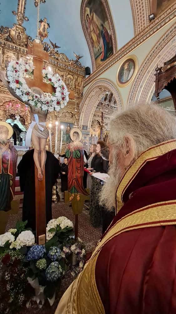 Το μεσημέρι, πλήθος κόσμου κατέκλυσε τον Καθεδρικό Ναό για να παρακολουθήσει την τελετή της Αποκαθήλωσης, ένα από τα πιο κατανυκτικά και συμβολικά γεγονότα του Θείου Πάθους. Της Ακολουθίας χοροστάτησε ο Σεβασμιώτατος Μητροπολίτης Λέρου, Καλύμνου και Αστυπαλαίας κ.κ. Παΐσιος, με τη συμμετοχή του Αρχιερατικού Επιτρόπου π. Αμφιλοχίου Σακαλλέρου.