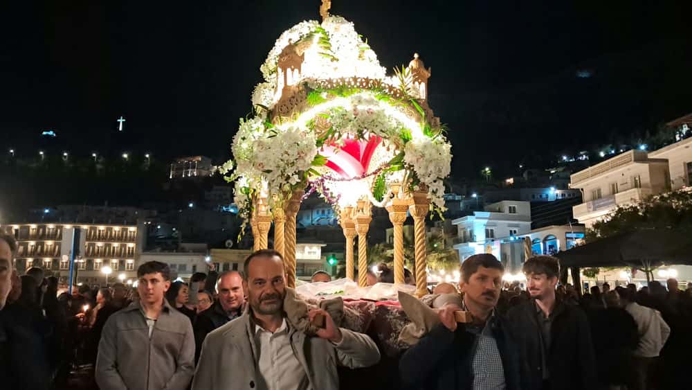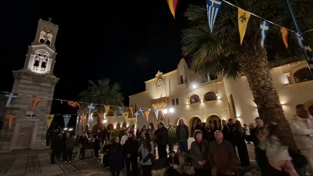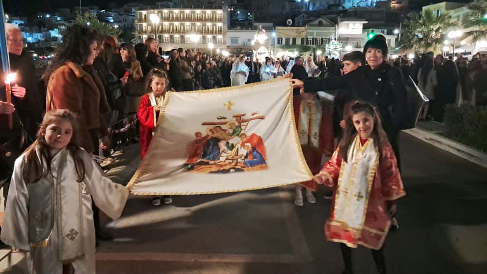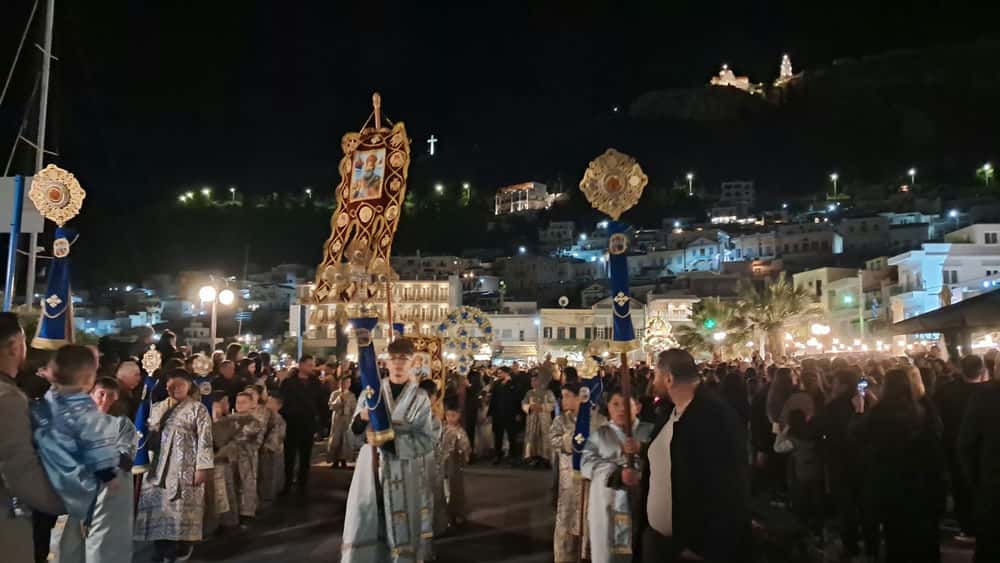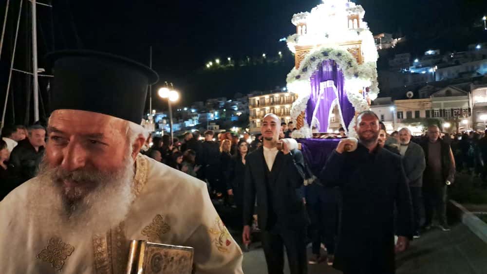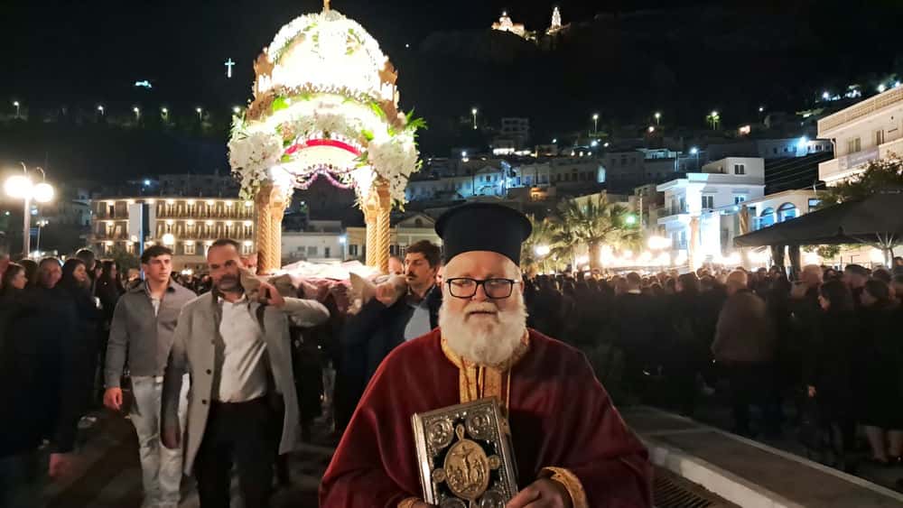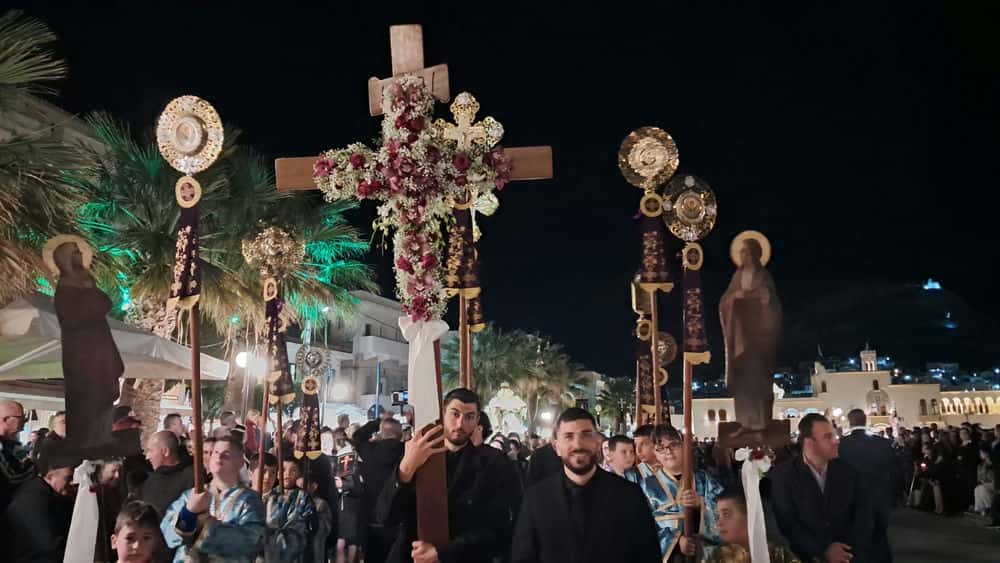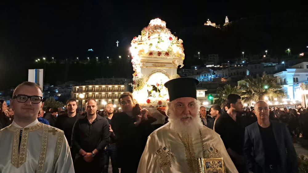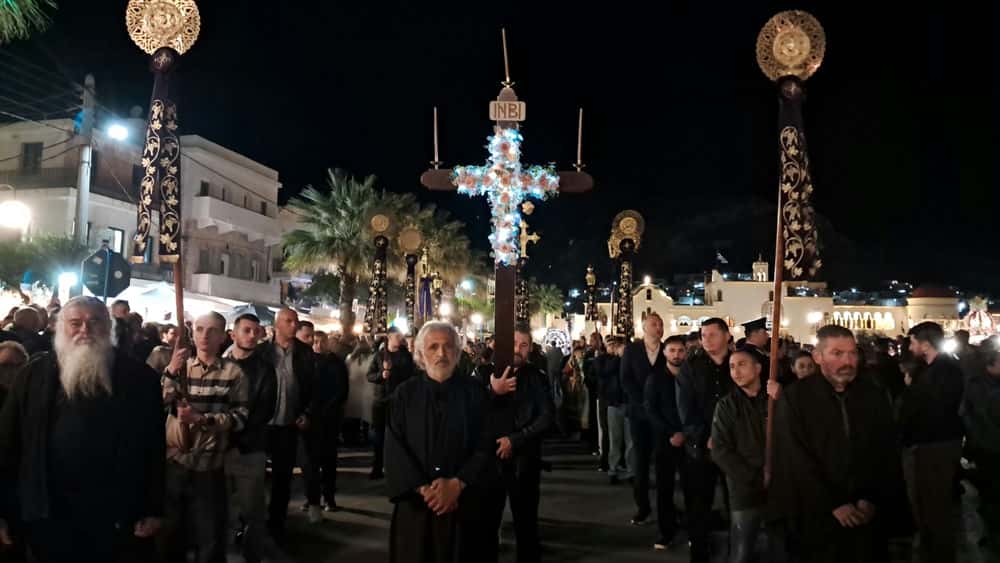 Ο καλός καιρός συνέβαλε καθοριστικά στην αυξημένη προσέλευση του κόσμου, με την ατμόσφαιρα να διακρίνεται από βαθιά κατάνυξη και συγκίνηση. Νωρίτερα, σε όλους τους Ιερούς Ναούς του νησιού τελέστηκε η Ακολουθία του Επιταφίου Θρήνου.