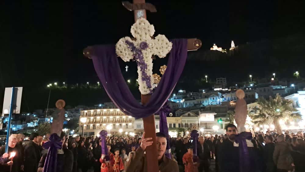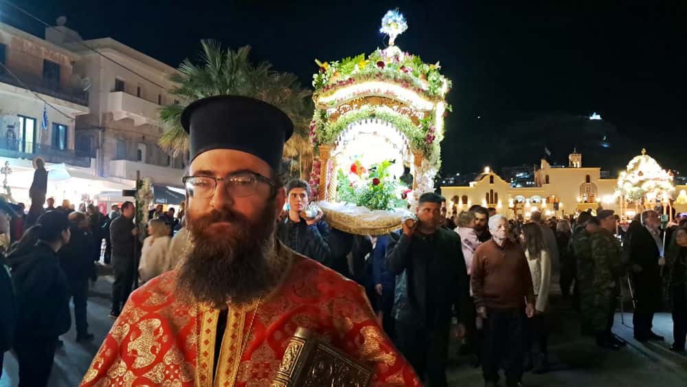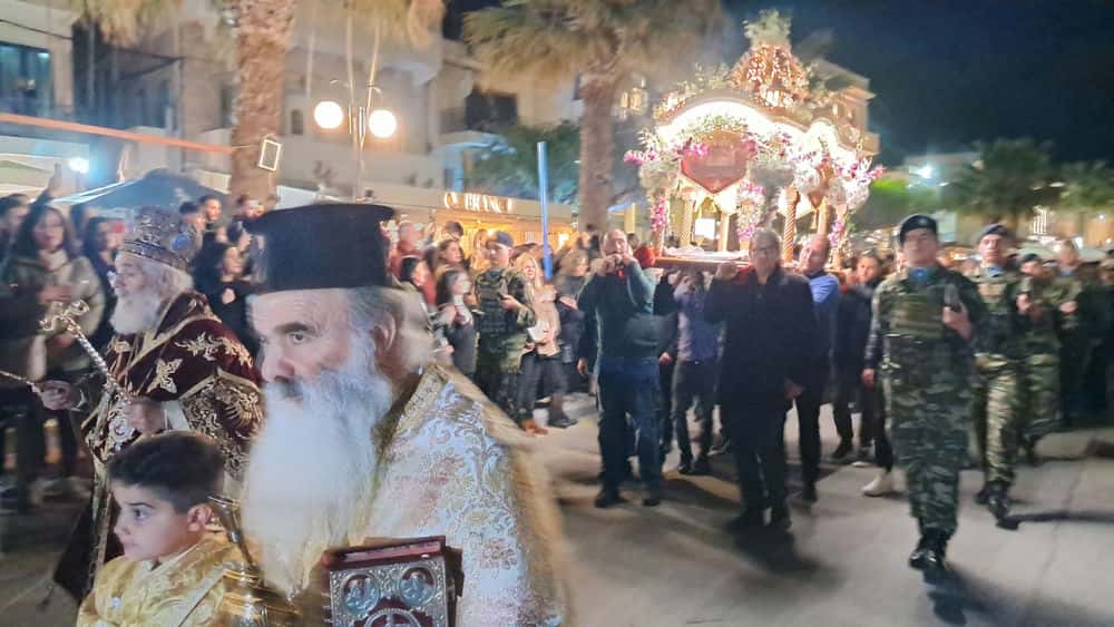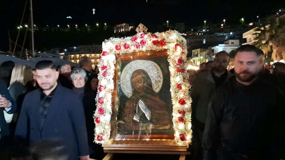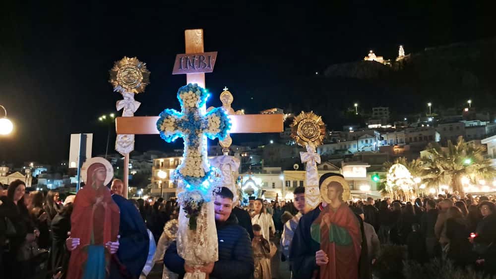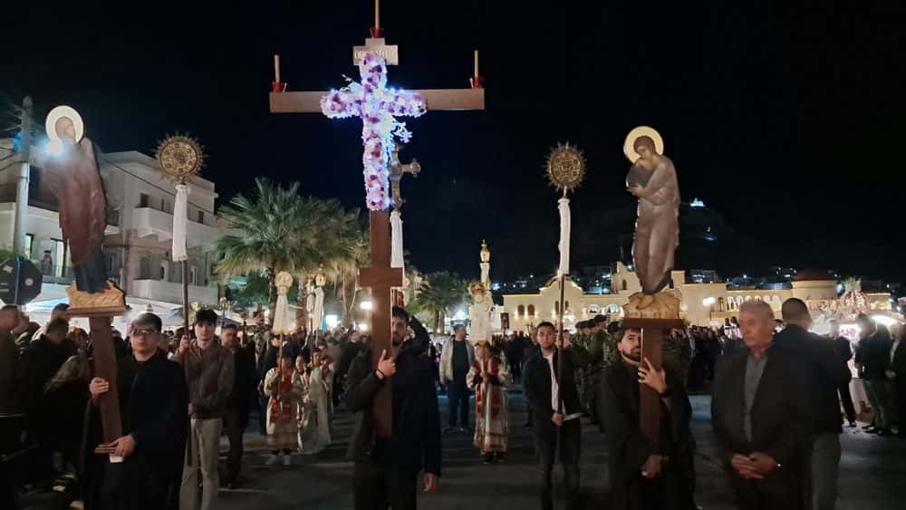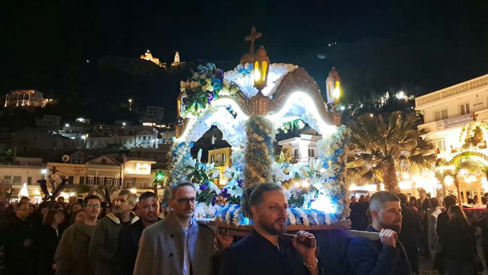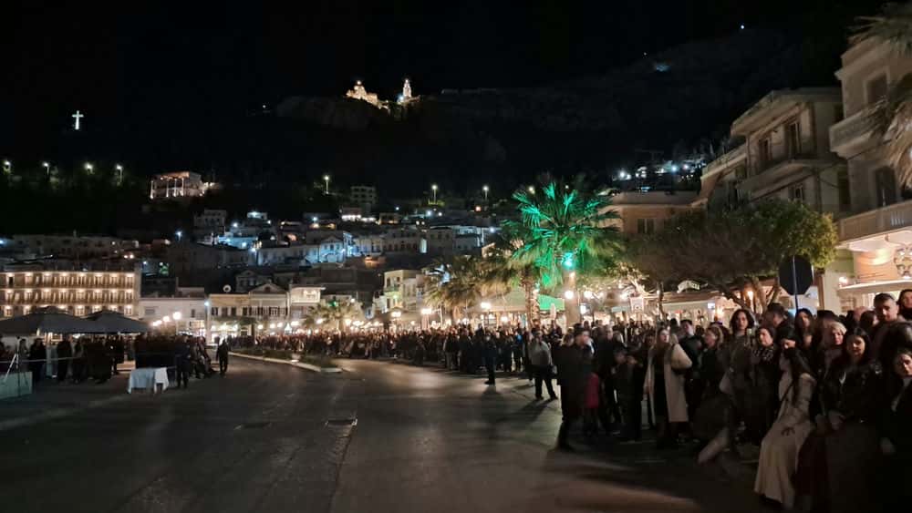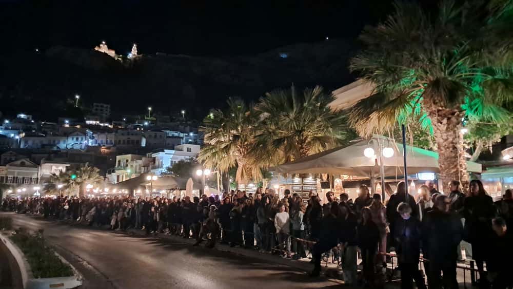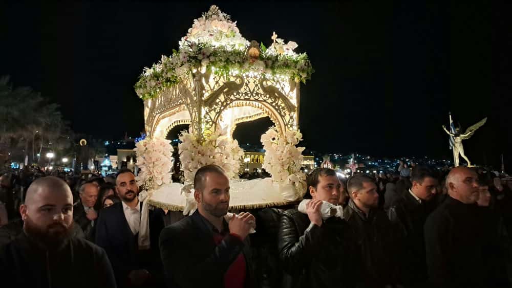 Ο καλός καιρός συνέβαλε καθοριστικά στην αυξημένη προσέλευση του κόσμου, με την ατμόσφαιρα να διακρίνεται από βαθιά κατάνυξη και συγκίνηση. Νωρίτερα, σε όλους τους Ιερούς Ναούς του νησιού τελέστηκε η Ακολουθία του Επιταφίου Θρήνου.