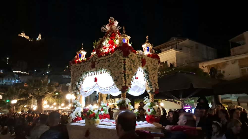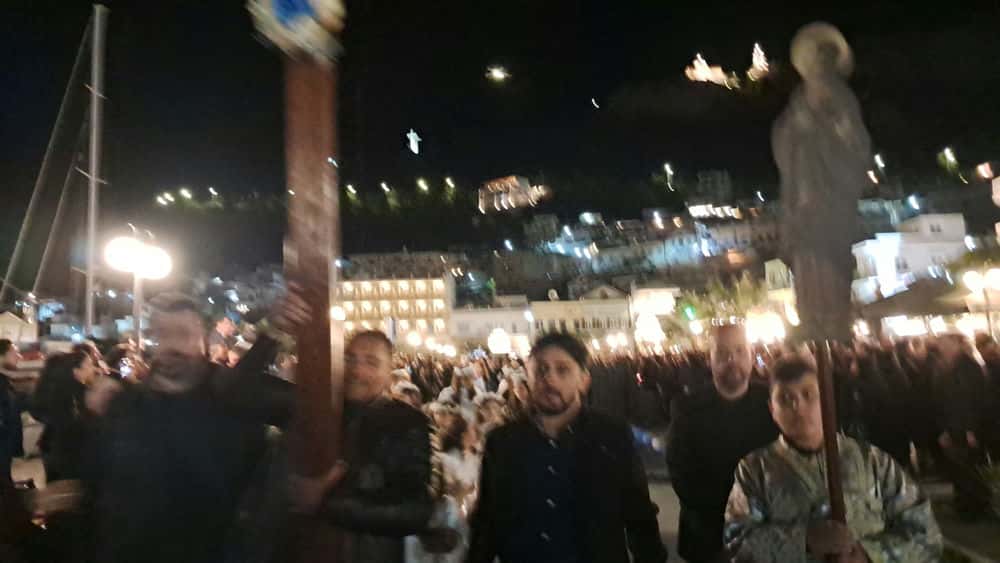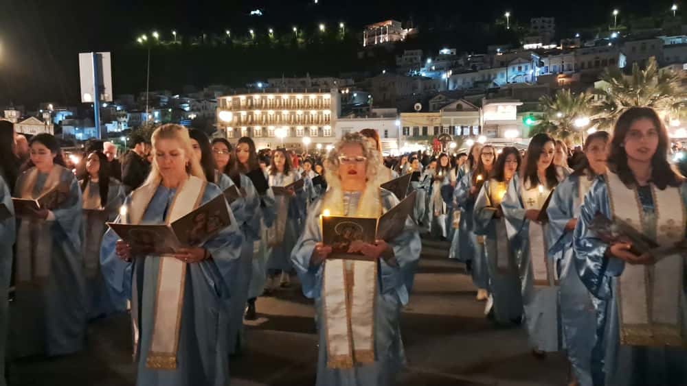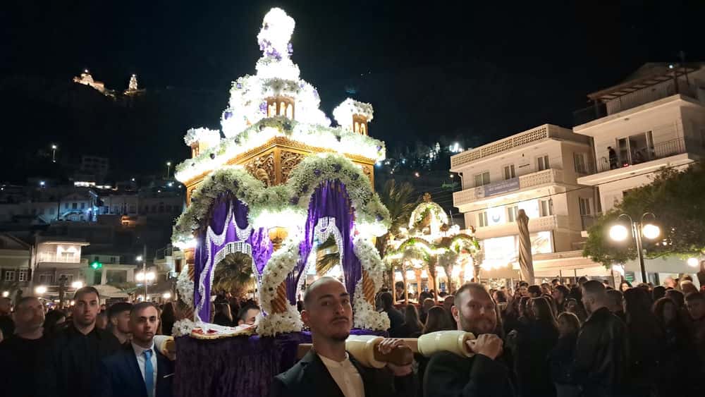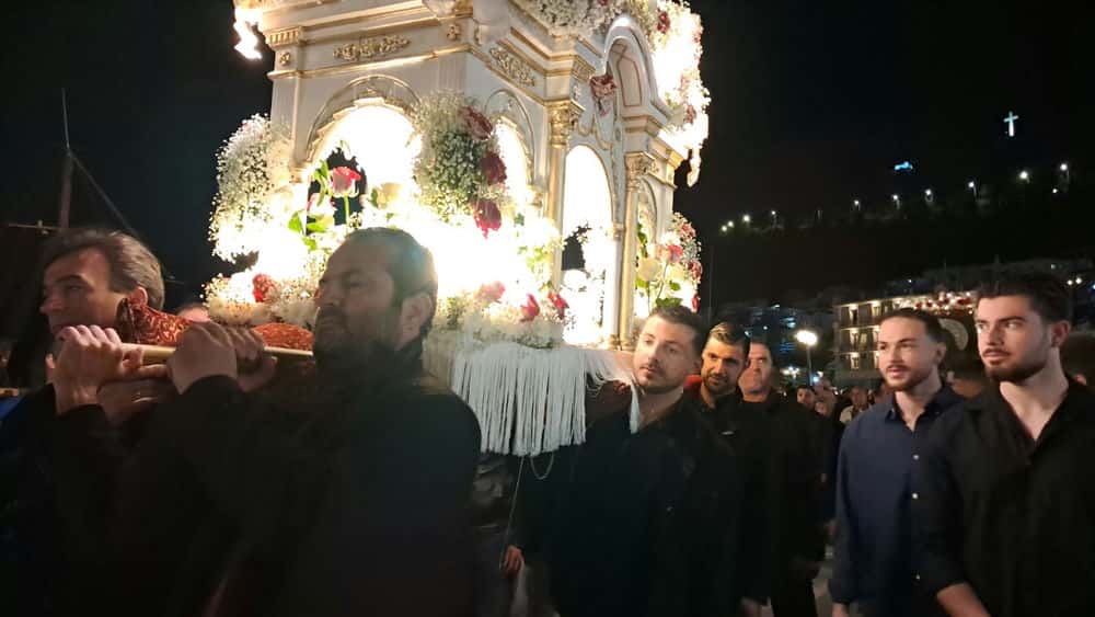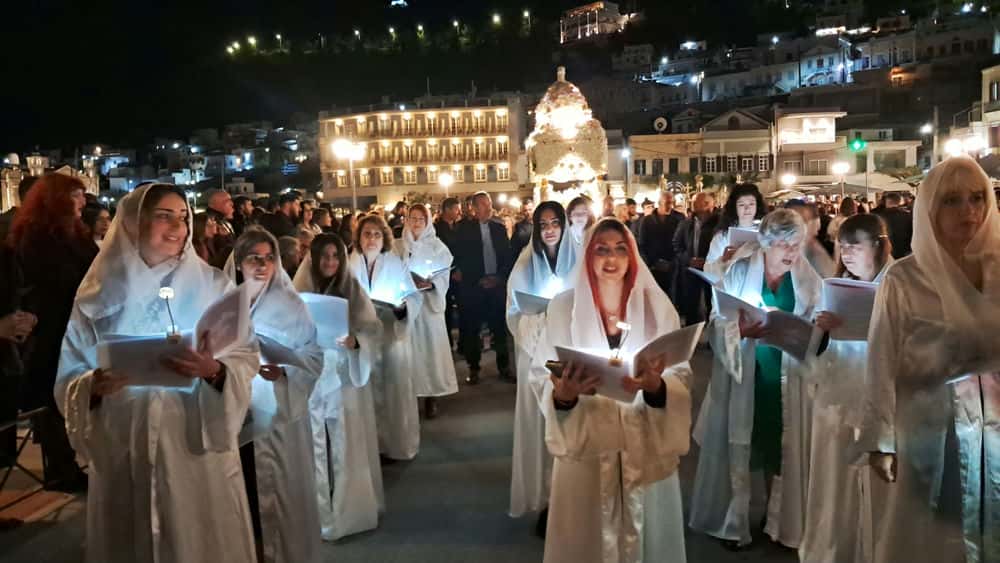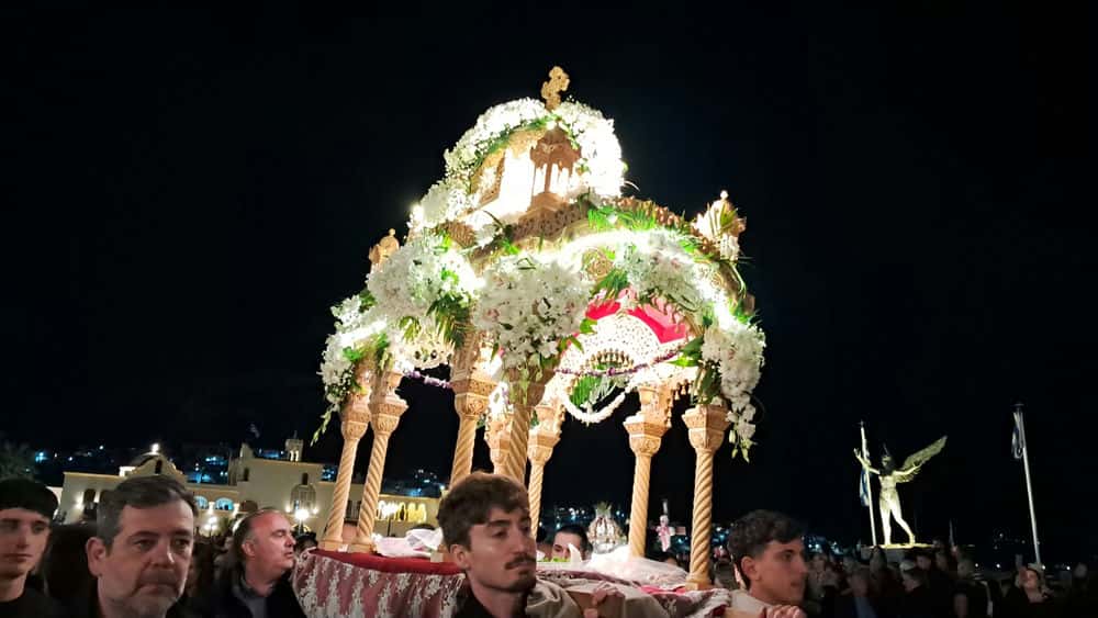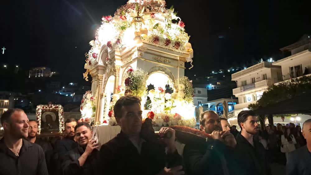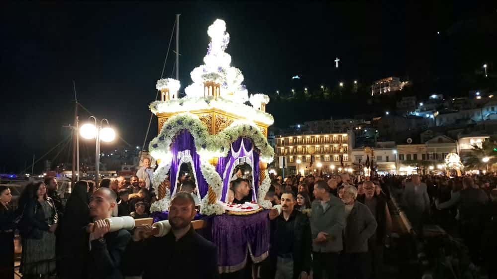 Ο καλός καιρός συνέβαλε καθοριστικά στην αυξημένη προσέλευση του κόσμου, με την ατμόσφαιρα να διακρίνεται από βαθιά κατάνυξη και συγκίνηση. Νωρίτερα, σε όλους τους Ιερούς Ναούς του νησιού τελέστηκε η Ακολουθία του Επιταφίου Θρήνου.