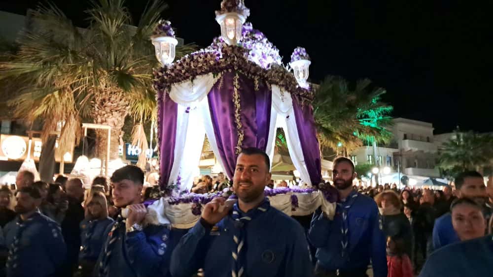 Στις 21:45 ξεκίνησε η περιφορά του Επιταφίου του Μητροπολιτικού Ναού, συνοδεία της Δημοτικής Φιλαρμονικής υπό τη διεύθυνση του αρχιμουσικού Νικολάου Μαμάκα και τιμητικού στρατιωτικού αγήματος. Η πομπή κινήθηκε προς την παραλιακή, όπου ενώθηκε με τις υπόλοιπες ενορίες της Πόθιας, σχηματίζοντας μια εντυπωσιακή «θρησκευτική παρέλαση».
