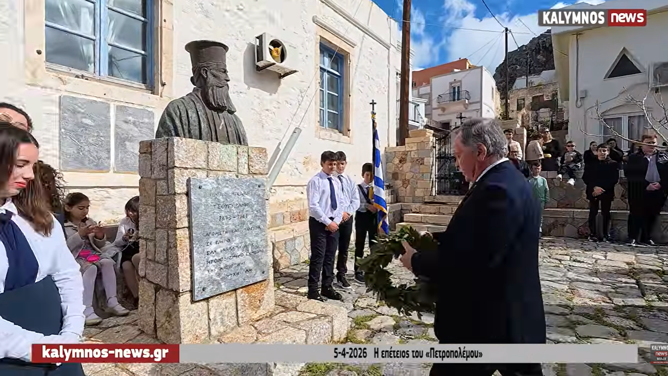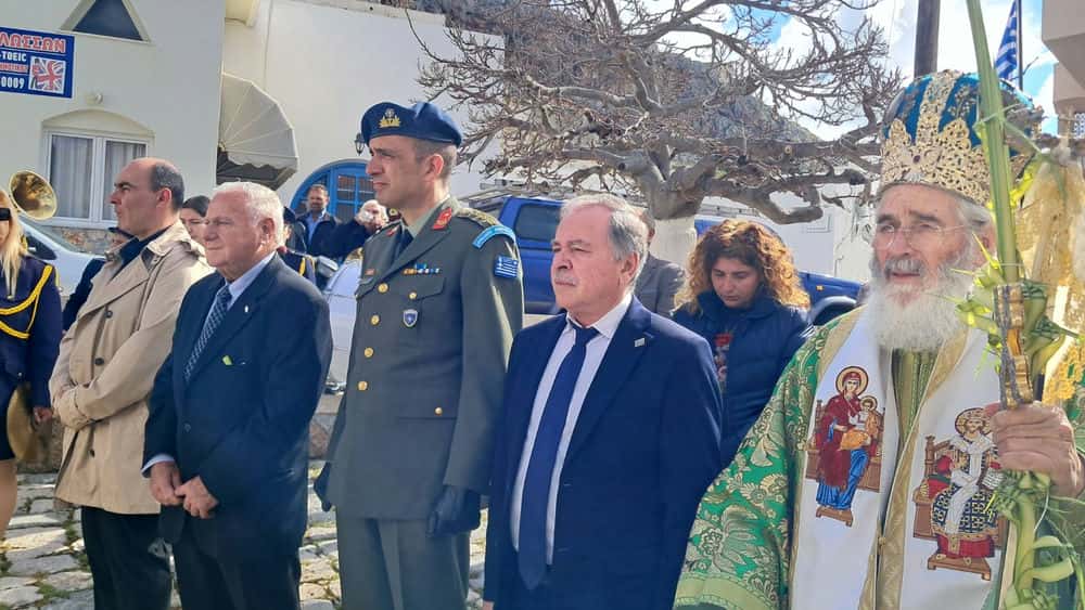 Ακολούθησε στον αύλειο χώρο του ναού η καθιερωμένη επετειακή τελετή, αφιερωμένη στην εθνικοθρησκευτική εξέγερση των Καλυμνίων στις 6-8 Απριλίου 1935 κατά της φασιστικής ιταλικής κατοχής. Ο «Πετροπόλεμος», όπως έμεινε γνωστός, αποτελεί σύμβολο αντίστασης, με τραγικό αποκορύφωμα τη δολοφονία του νεαρού Μανώλη Καζώνη.