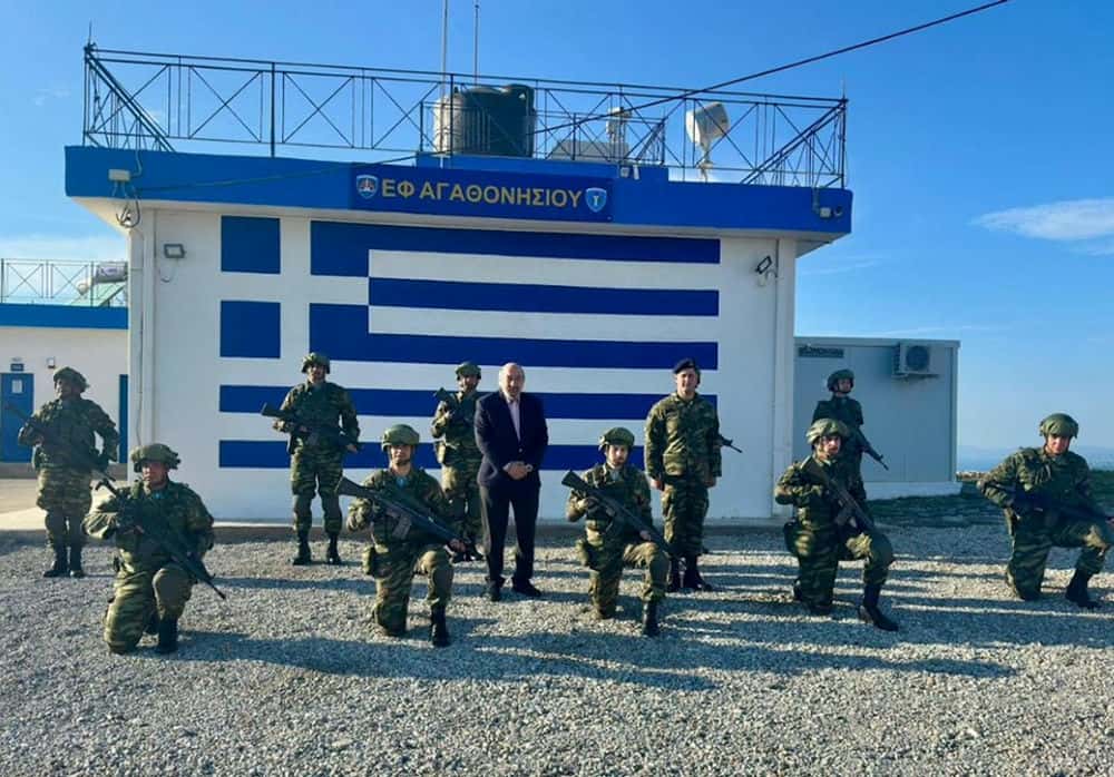 Πρώτος σταθμός της επίσκεψής του ήταν το Επιτηρητικό Φυλάκιο Αγαθονησίου, όπου έγινε δεκτός από το προσωπικό και αντάλλαξε ευχές ενόψει της Μεγάλης Εβδομάδας. Η επίσκεψη στο ΕΦ είχε ιδιαίτερο συμβολισμό, καθώς πραγματοποιήθηκε σε ένα από τα πιο ακριτικά σημεία της πατρίδας, εκεί όπου τα στελέχη των Ενόπλων Δυνάμεων υπηρετούν με αυταπάρνηση, επαγρύπνηση και υψηλό αίσθημα ευθύνης, κρατώντας ζωντανή και αδιαπραγμάτευτη την ελληνική παρουσία στα θαλάσσια σύνορα της Ελλάδος.