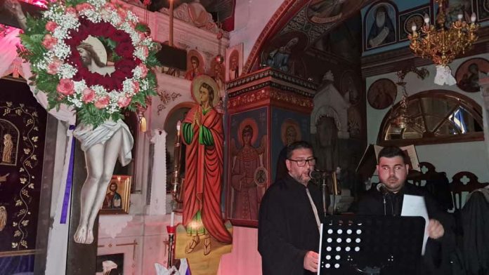 Η εκδήλωση με τίτλο «Εν Σταυρώ» έλαβε χώρα μπροστά στον Εσταυρωμένο, υπό το λιγοστό, συμβολικό φως των κεριών, δημιουργώντας μια ατμόσφαιρα μυσταγωγίας και βαθιάς συγκίνησης, απόλυτα εναρμονισμένη με το πνεύμα των ημερών της Μεγάλης Εβδομάδας.