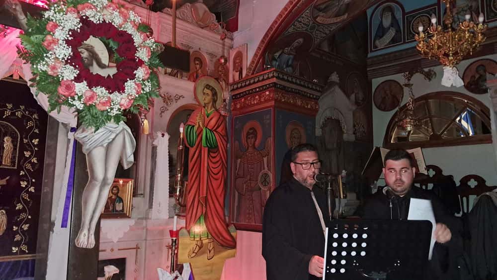 Σολίστ της βραδιάς ήταν ο Μανόλης Καζαβούλης και ο Γιάννης Μουσελλής, οι οποίοι ερμήνευσαν επιλεγμένα τροπάρια της Μεγάλης Εβδομάδας, αποδίδοντας με σεβασμό και εκφραστικότητα το λειτουργικό τους βάθος.